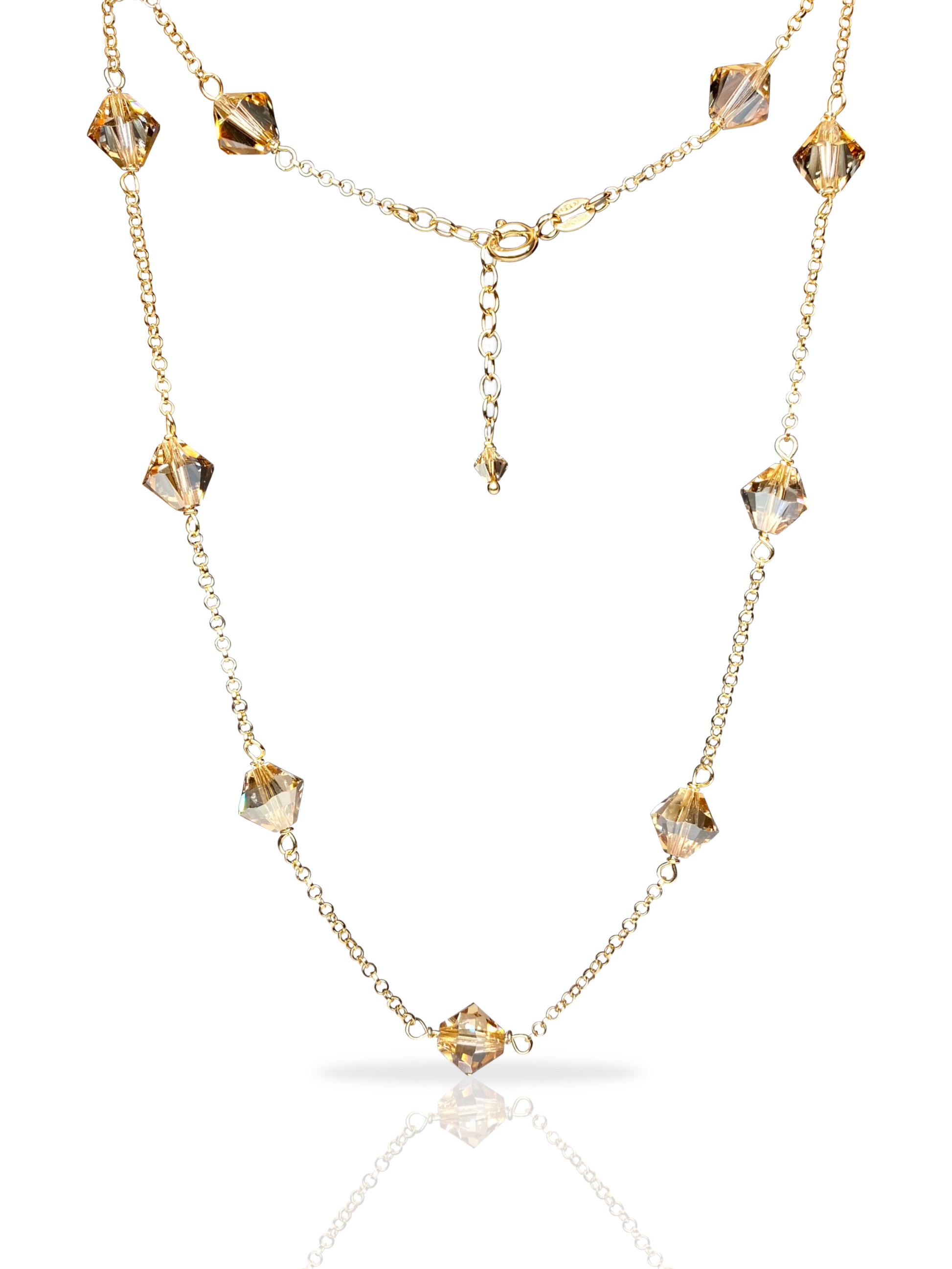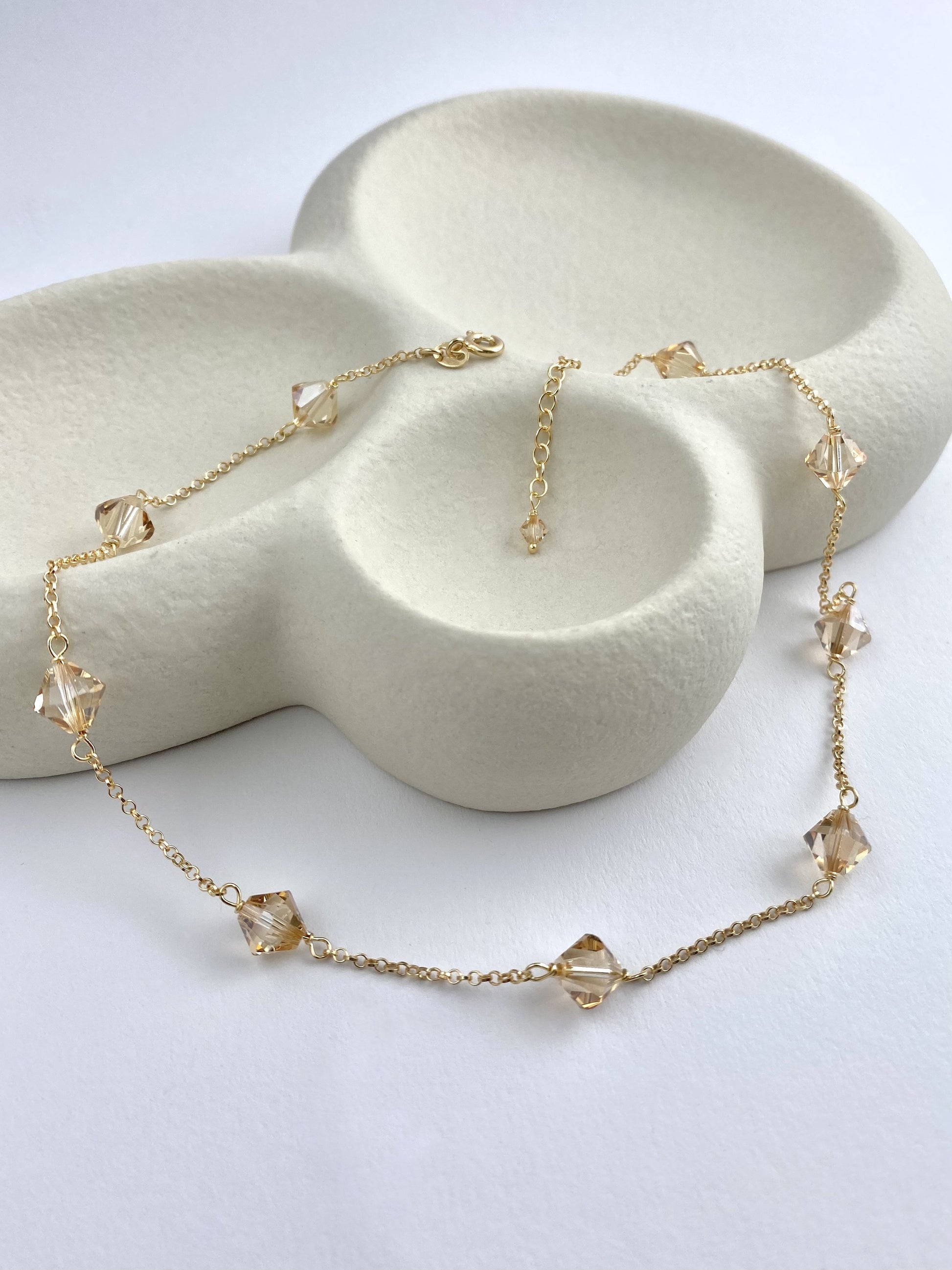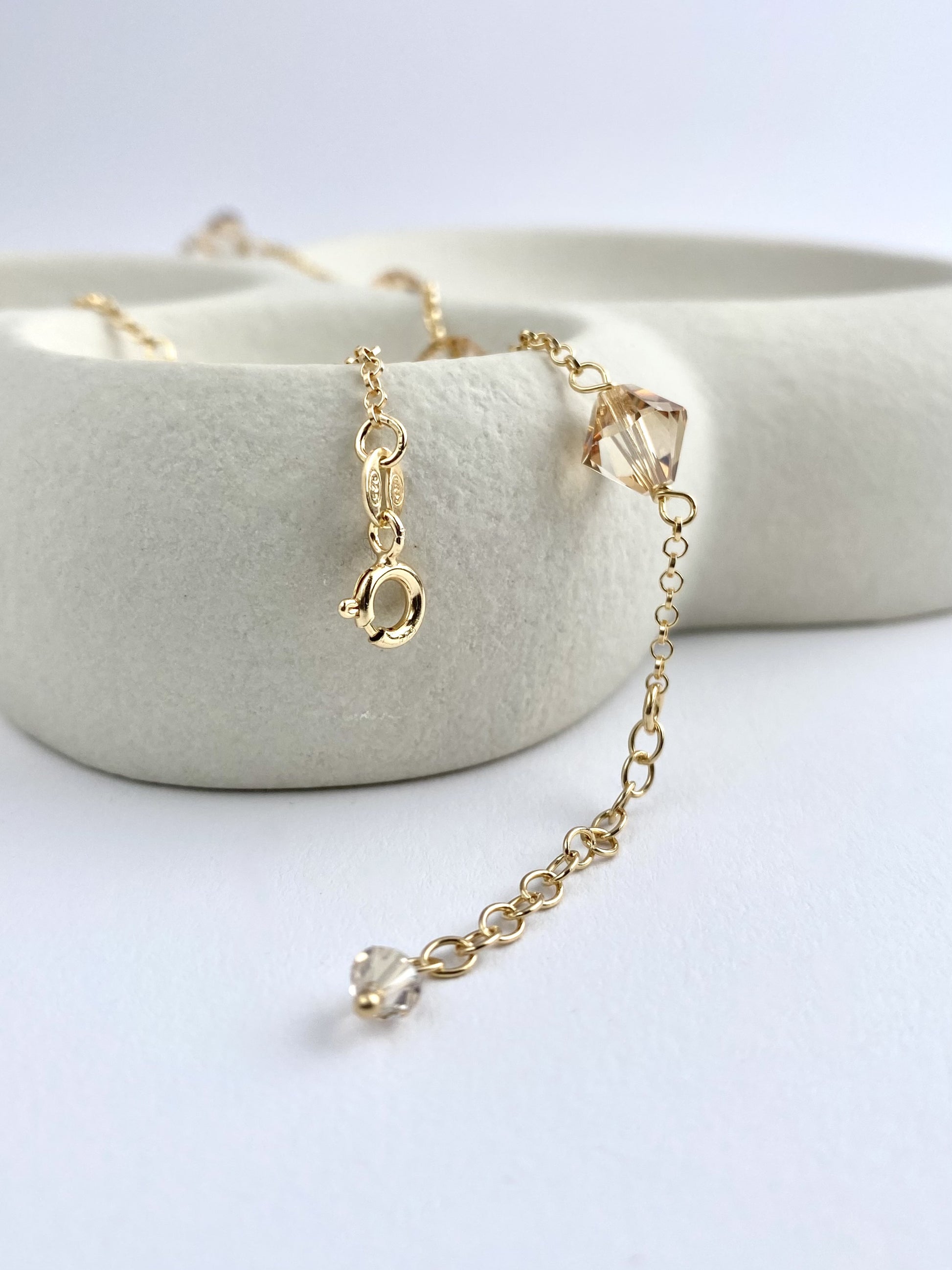 Materiaalit: 18K kullattu 925 sterling hopea, kristallilasihelmet.