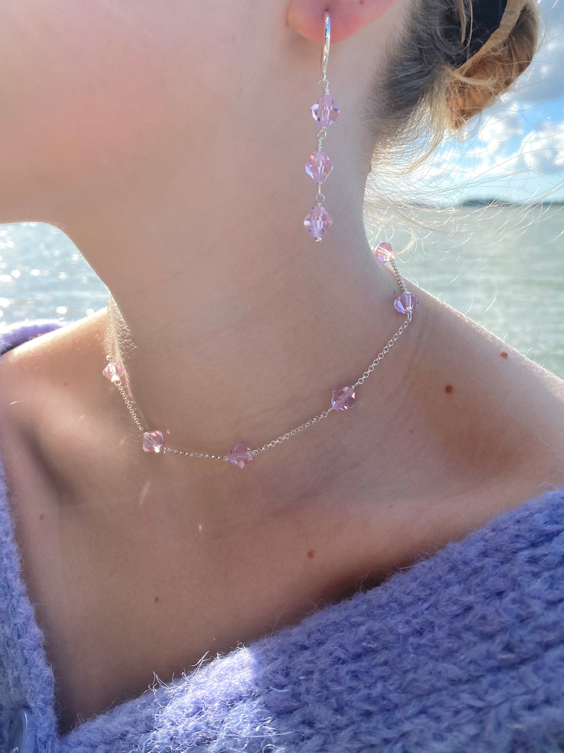 Aarteeni-kaulakorun ketju ja muut metalliosat ovat kierrätettyä 925 sterling hopeaa. Koru on koristeltu tšekkiläisillä kristallilasihelmillä.