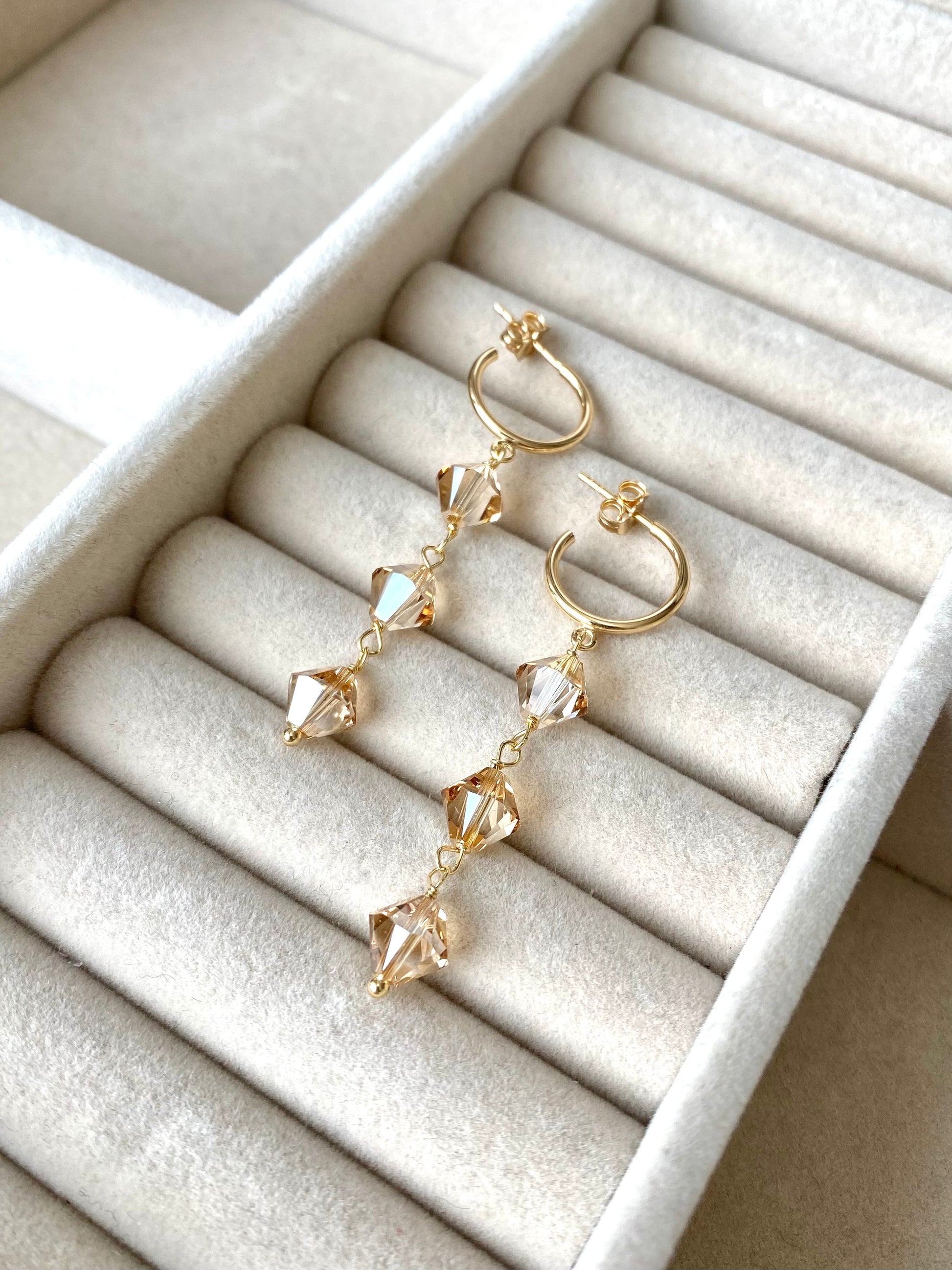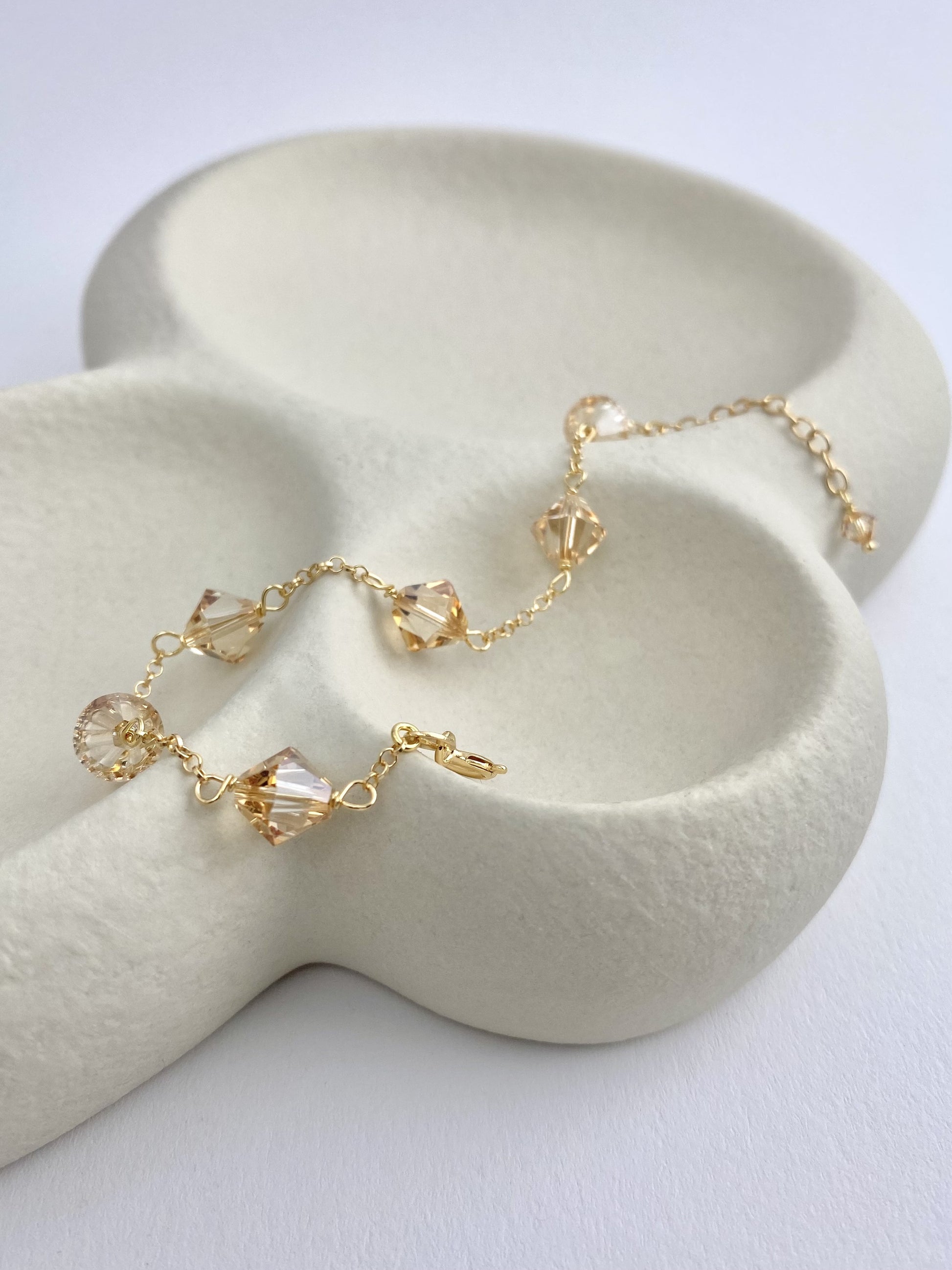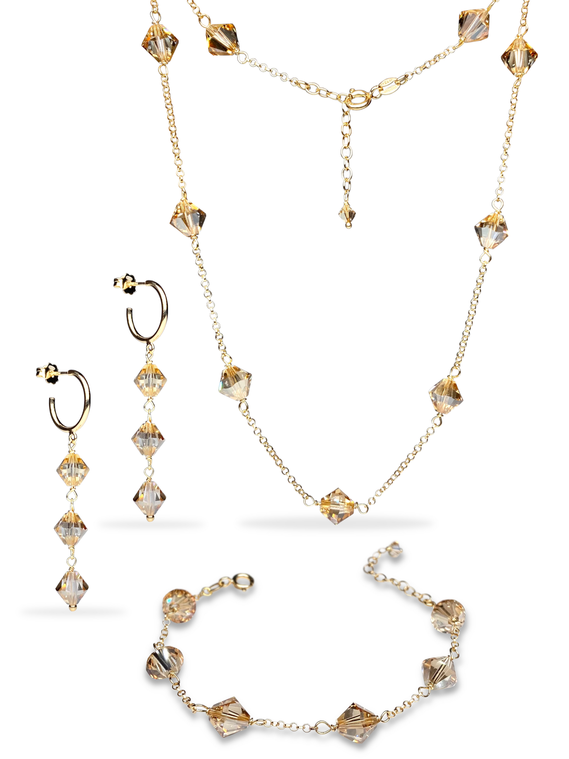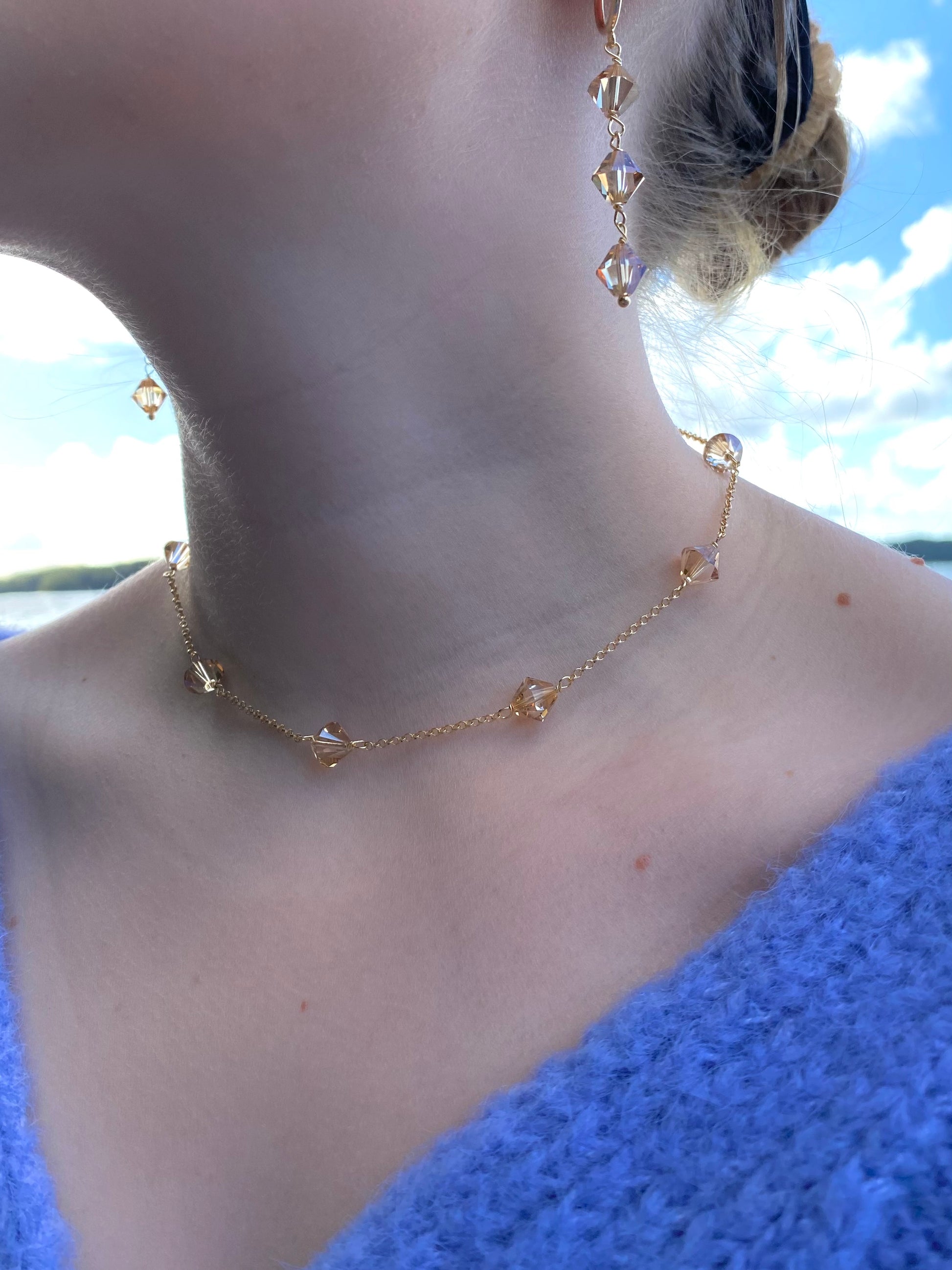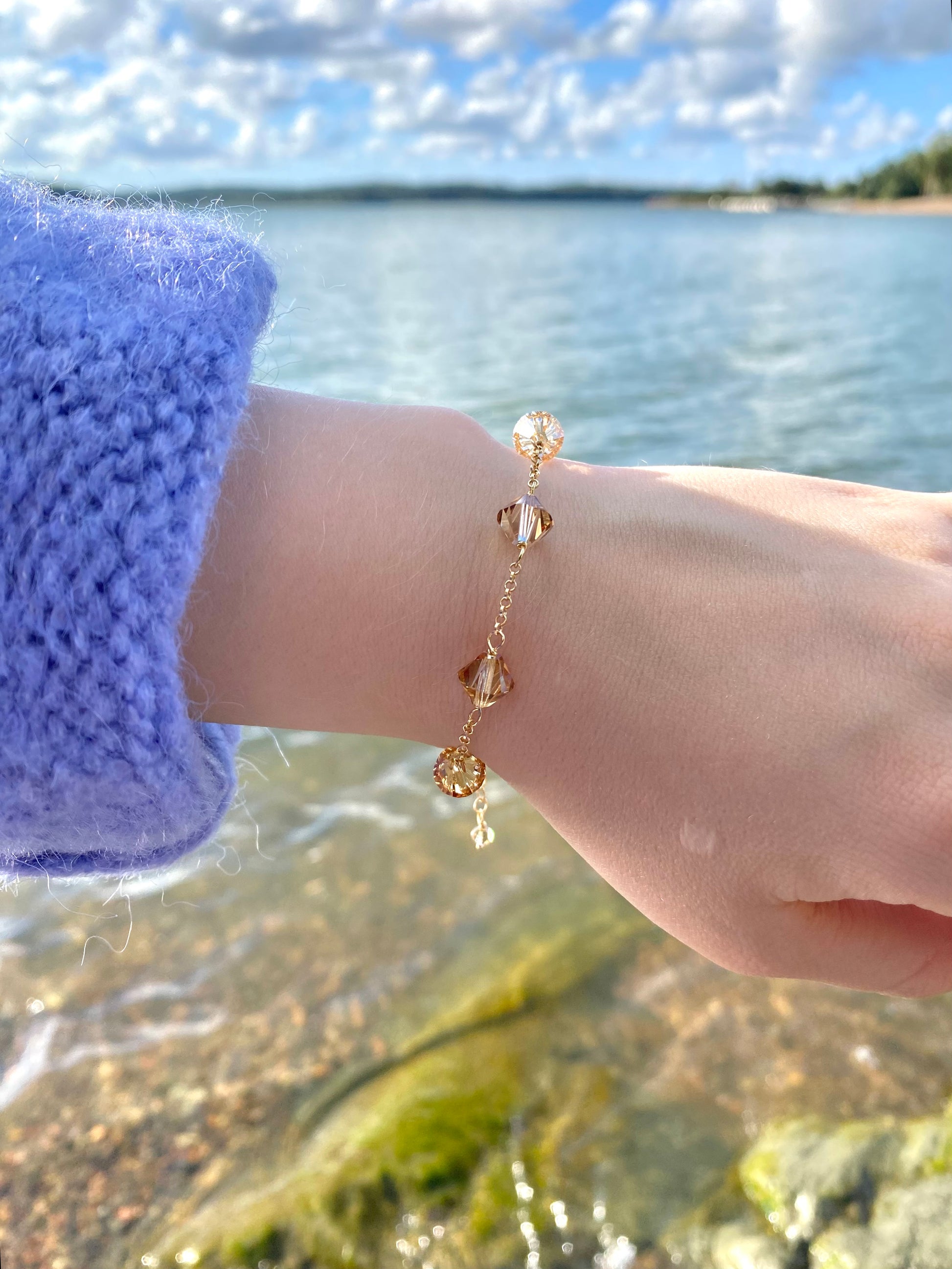 Materiaalit: 18K kullattu 925 sterling hopea, kristallilasihelmet.