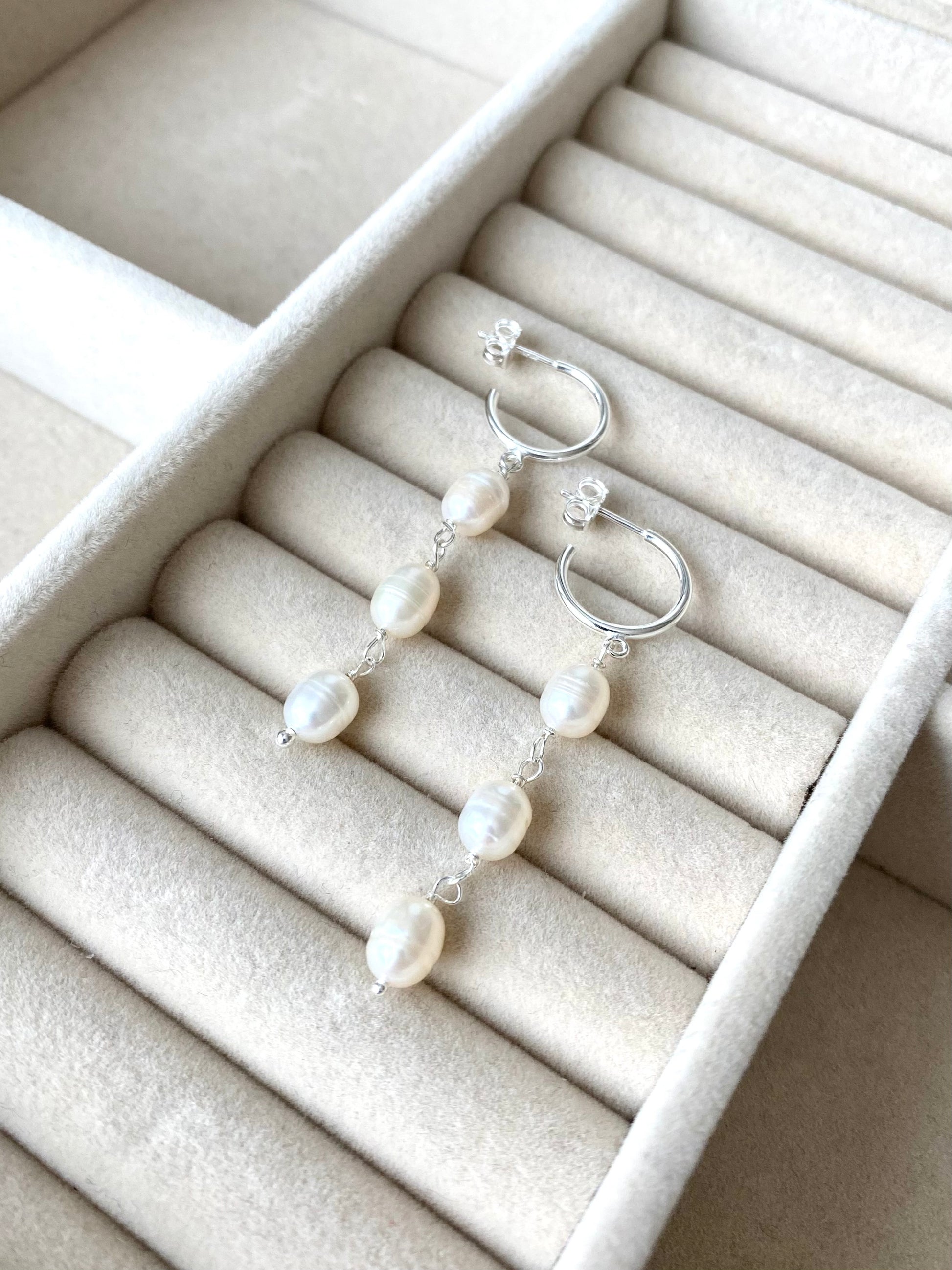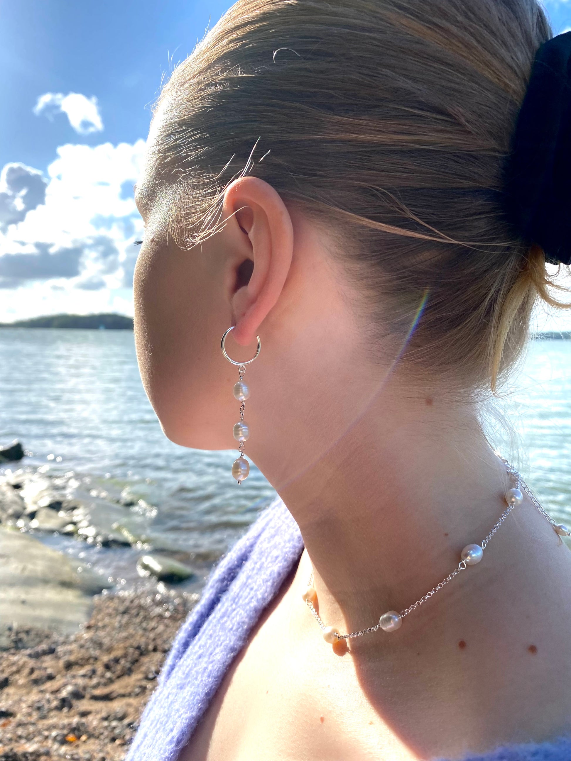 Materiaalit: 925 sterling hopea, makeanvedenhelmet.