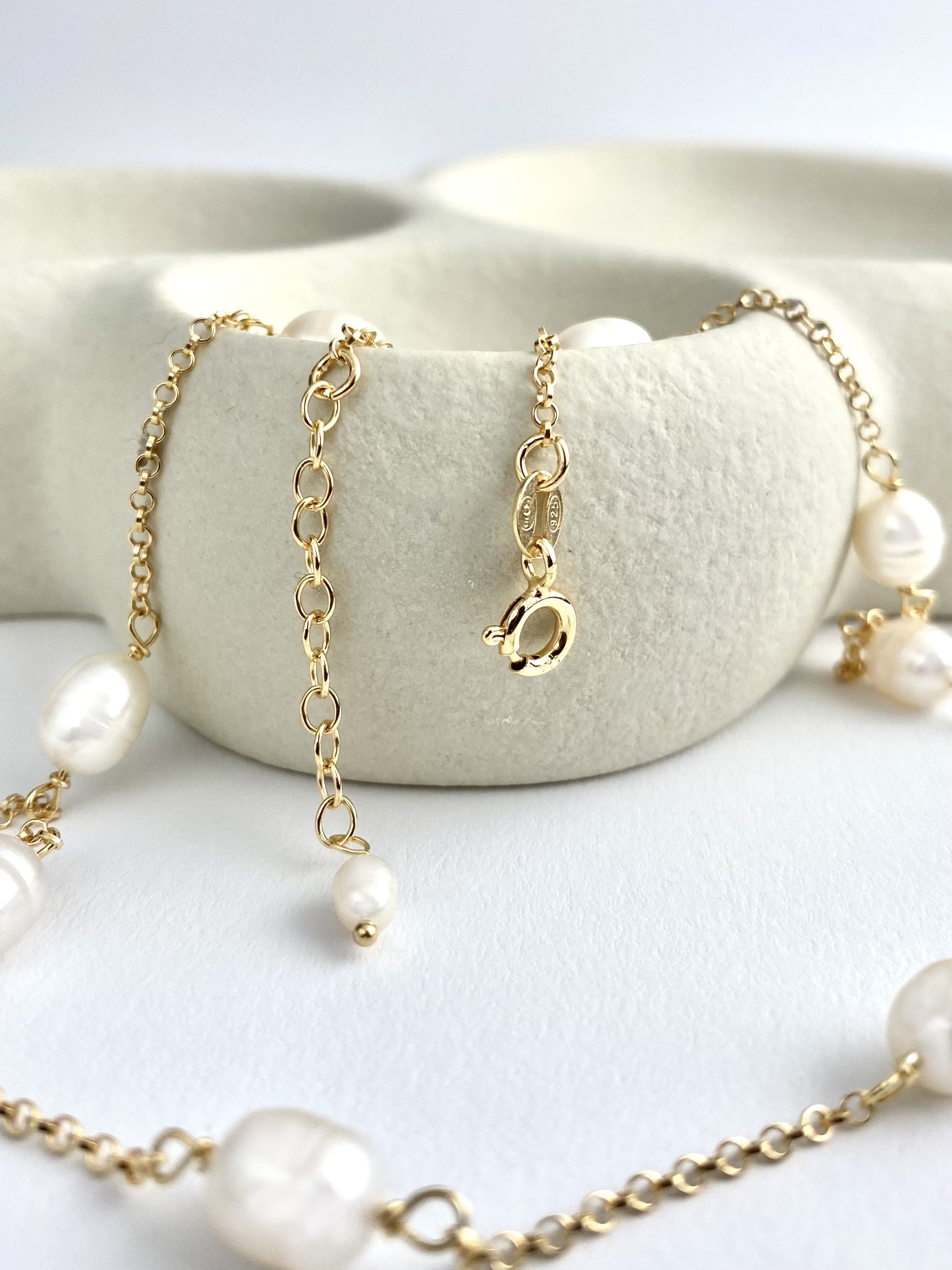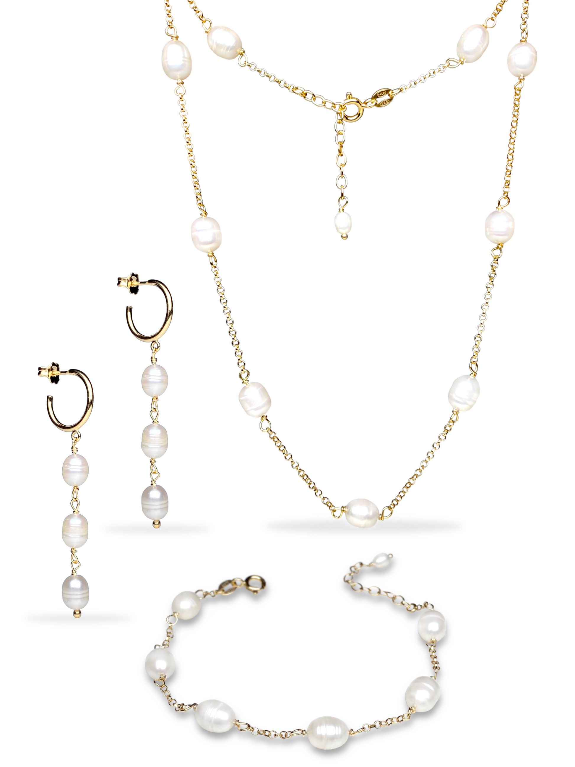 Materiaalit: 18K kullattu 925 sterling hopea, makeanvedenhelmet.