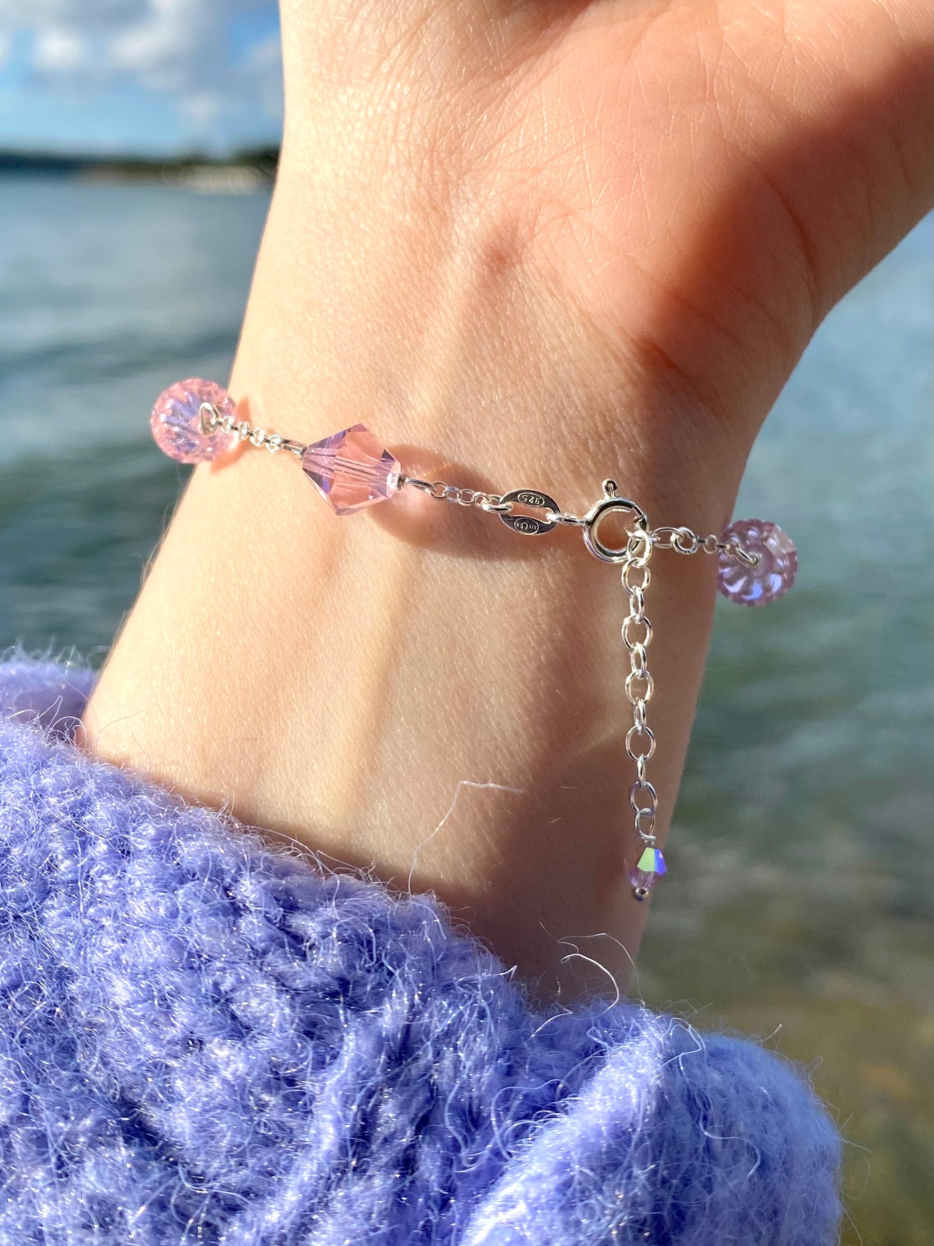 Materiaalit: 925 sterling hopea, kristallilasihelmet.