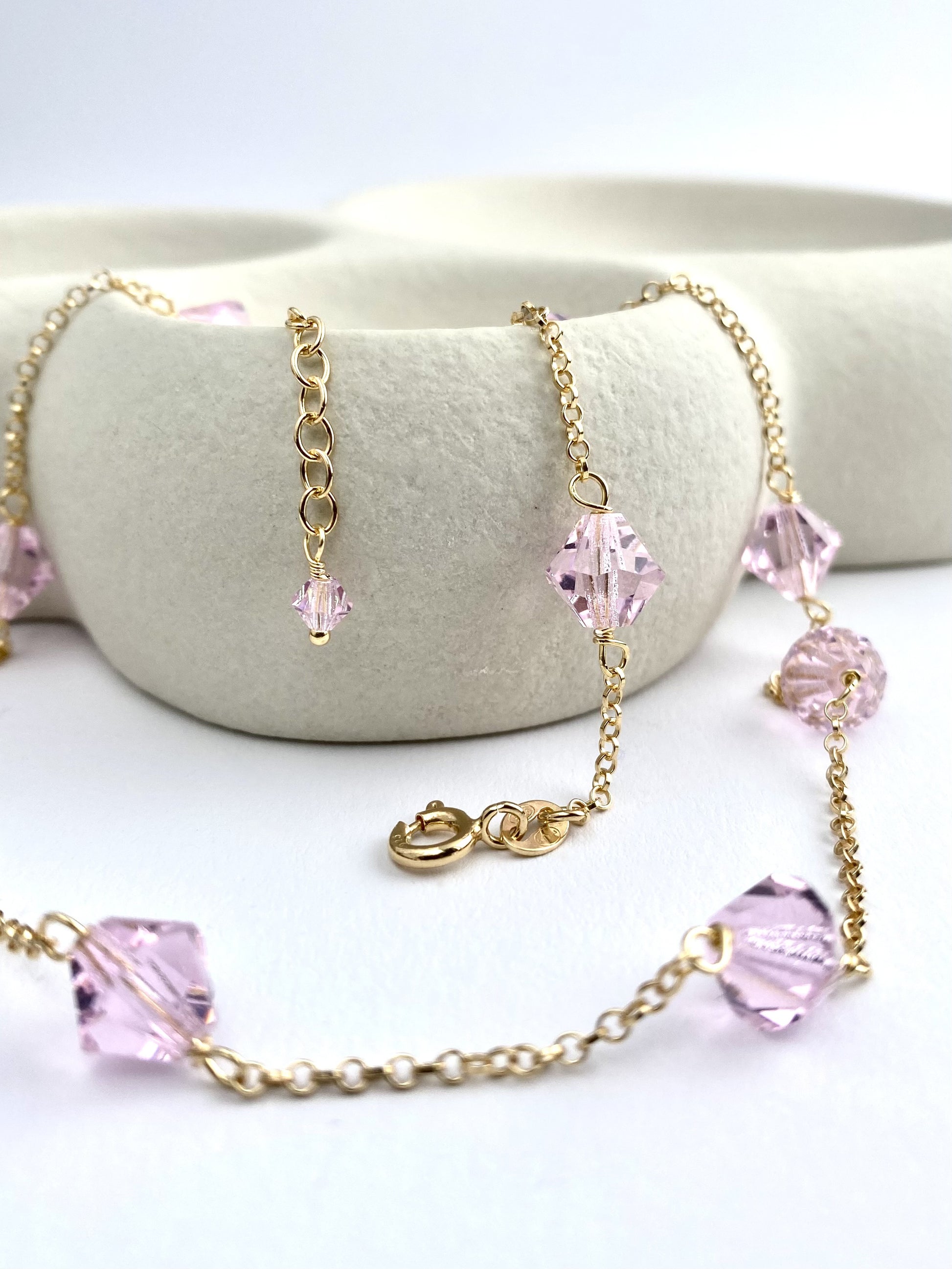 Materiaalit: 18K kullattu 925 sterling hopea, kristallilasihelmet.