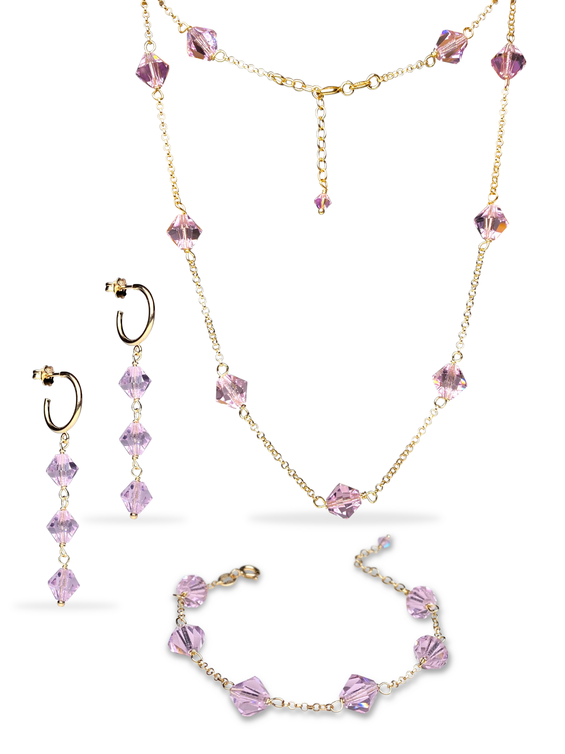 Aarteeni-korusetti, vaaleanpunainen, kullattu hopea