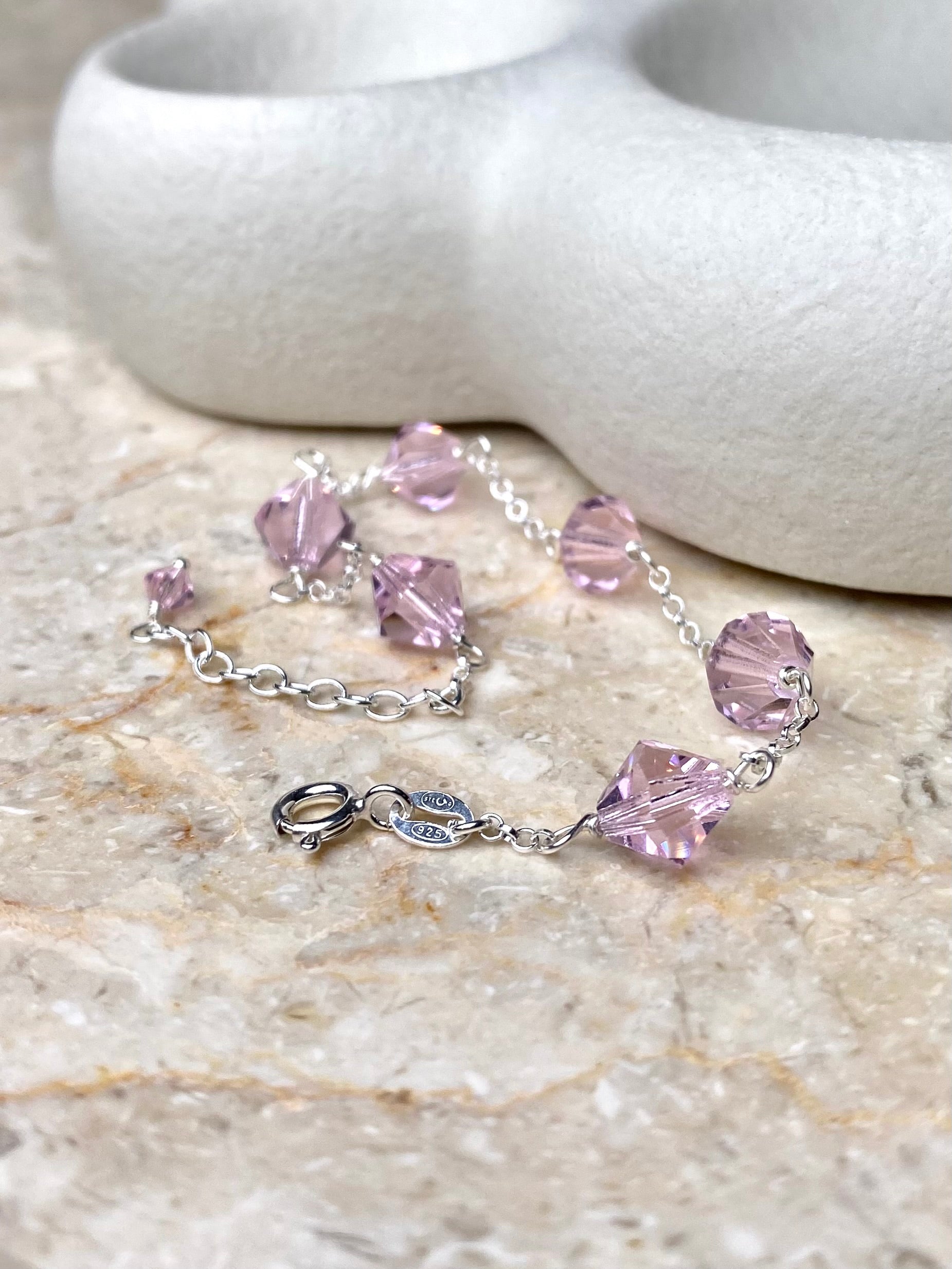 Aarteeni-rannekorun ketju ja muut metalliosat ovat kierrätettyä 925 sterling hopeaa. Koru on koristeltu tšekkiläisillä kristallilasihelmillä.