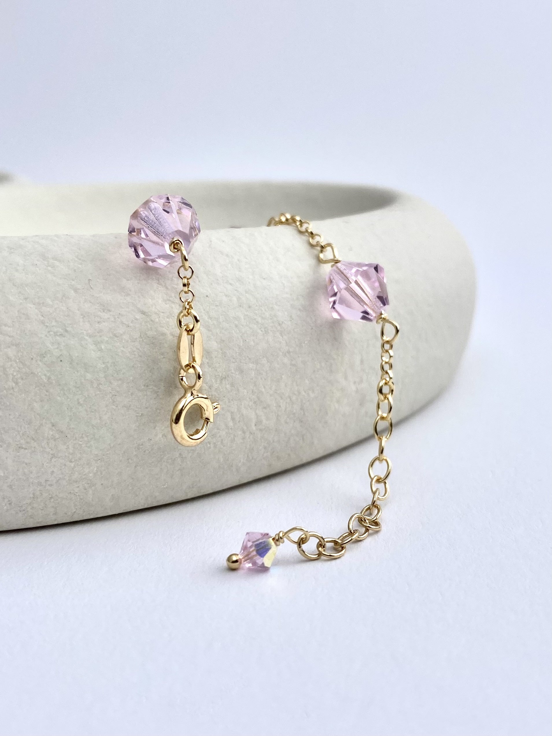 Materiaalit: 18K kullattu 925 sterling hopea, kristallilasihelmet.