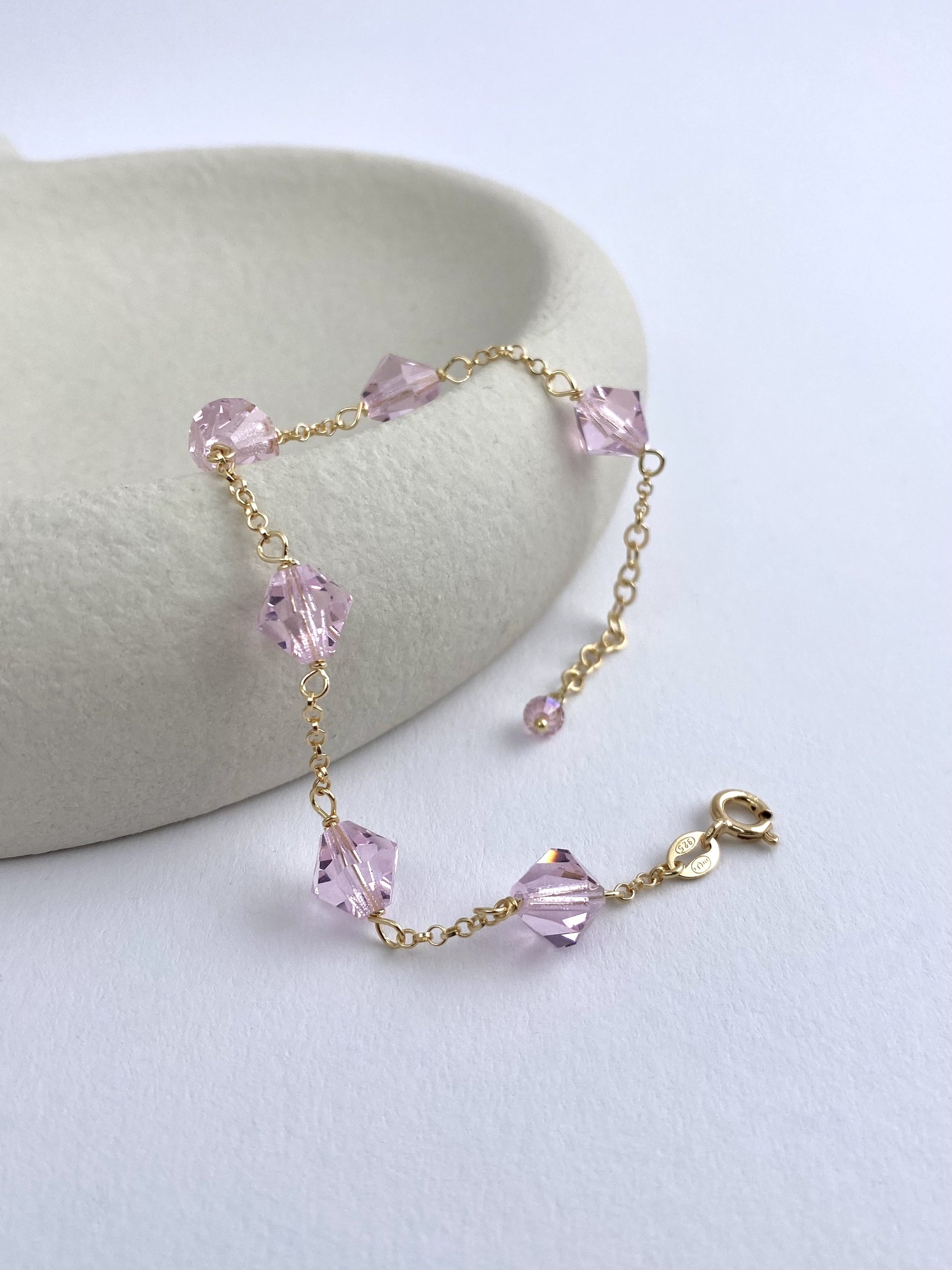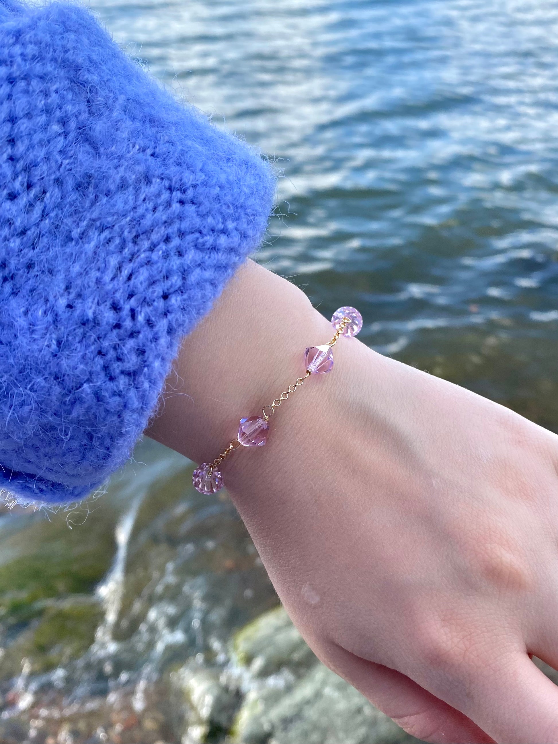 Aarteeni-rannekoru, vaaleanpunainen, kullattu hopea