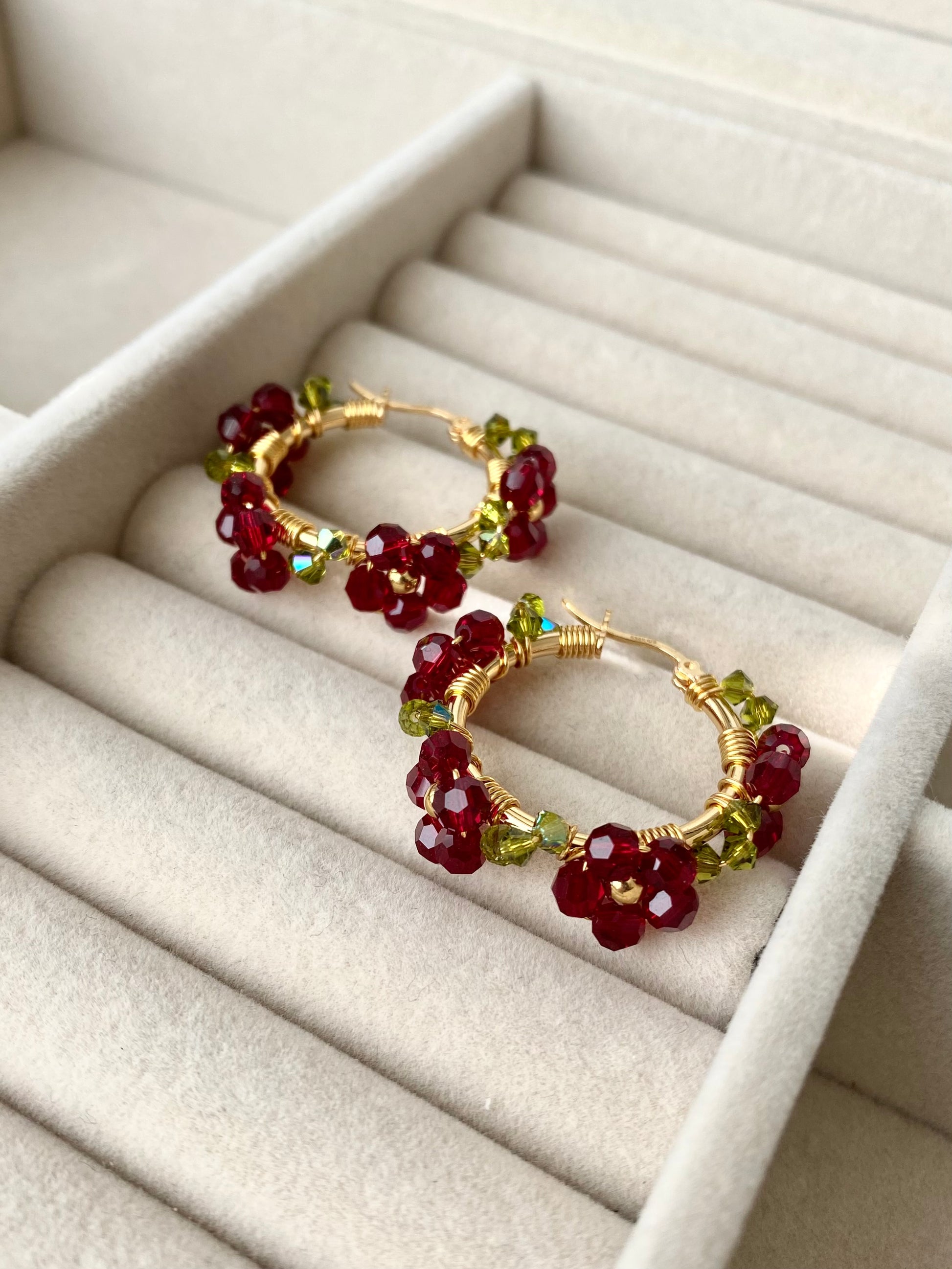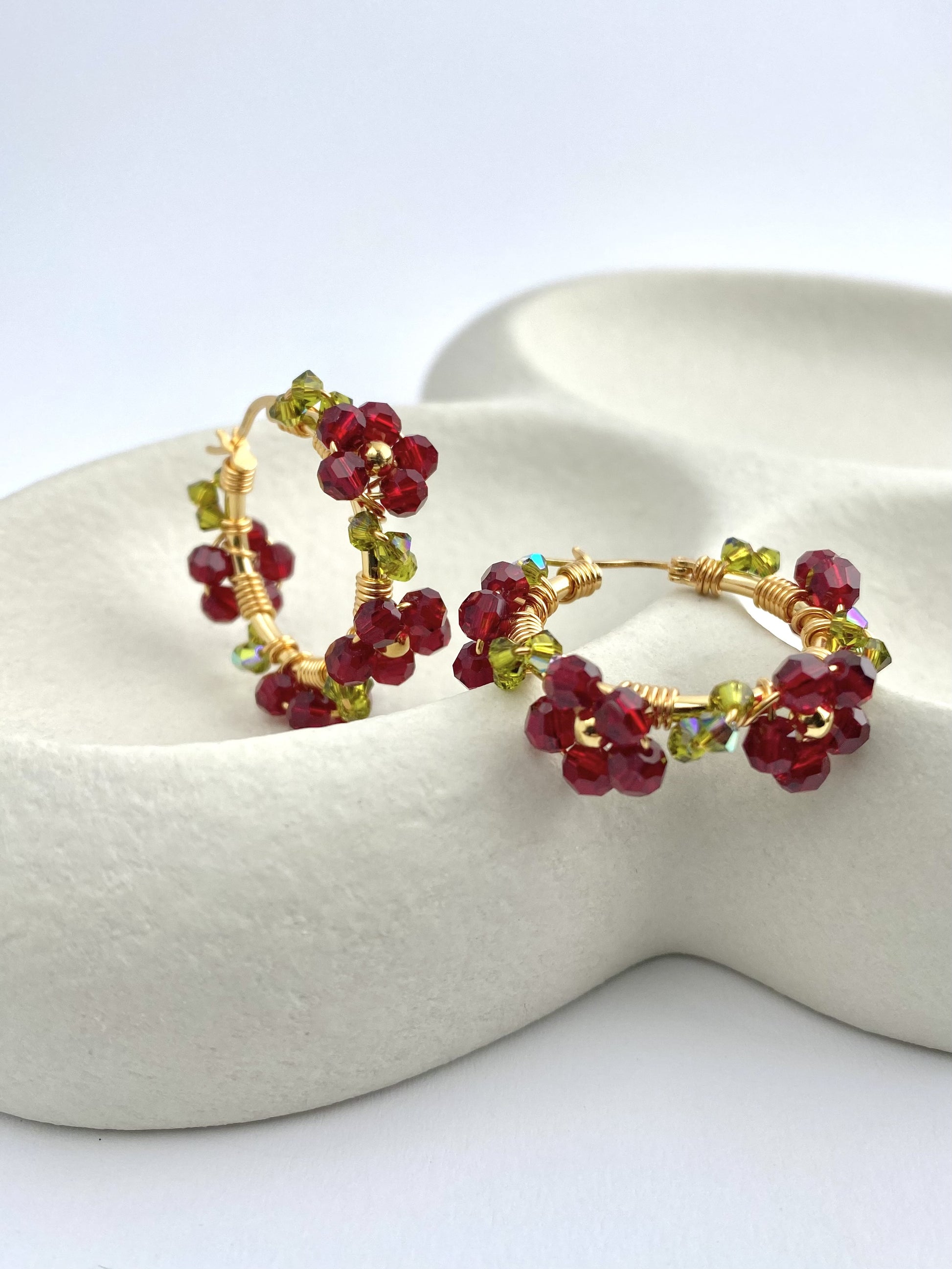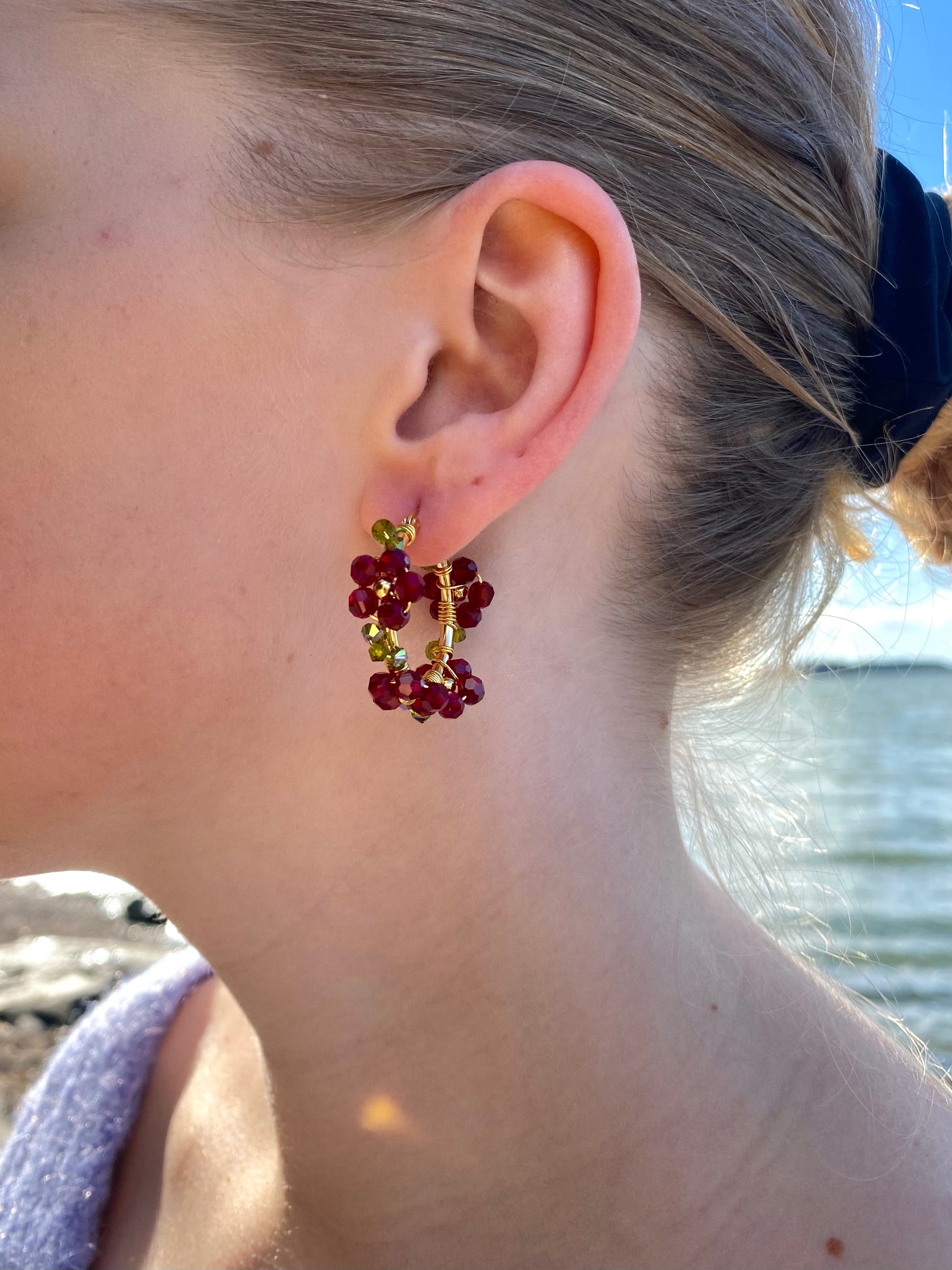 Kristalliniitty-korvakorut, tummanpunainen, kullattu hopea