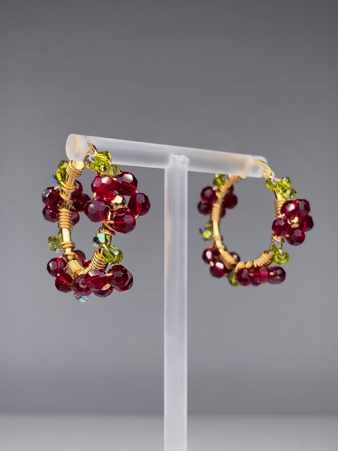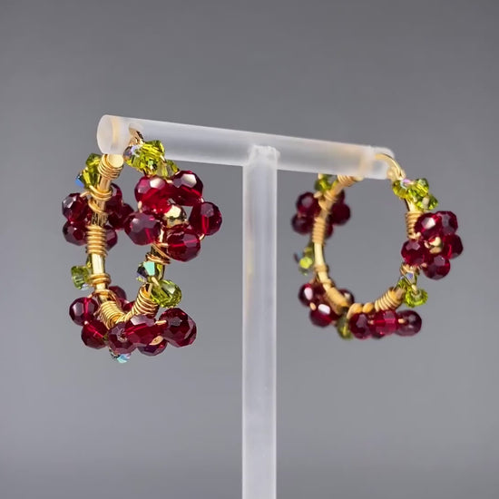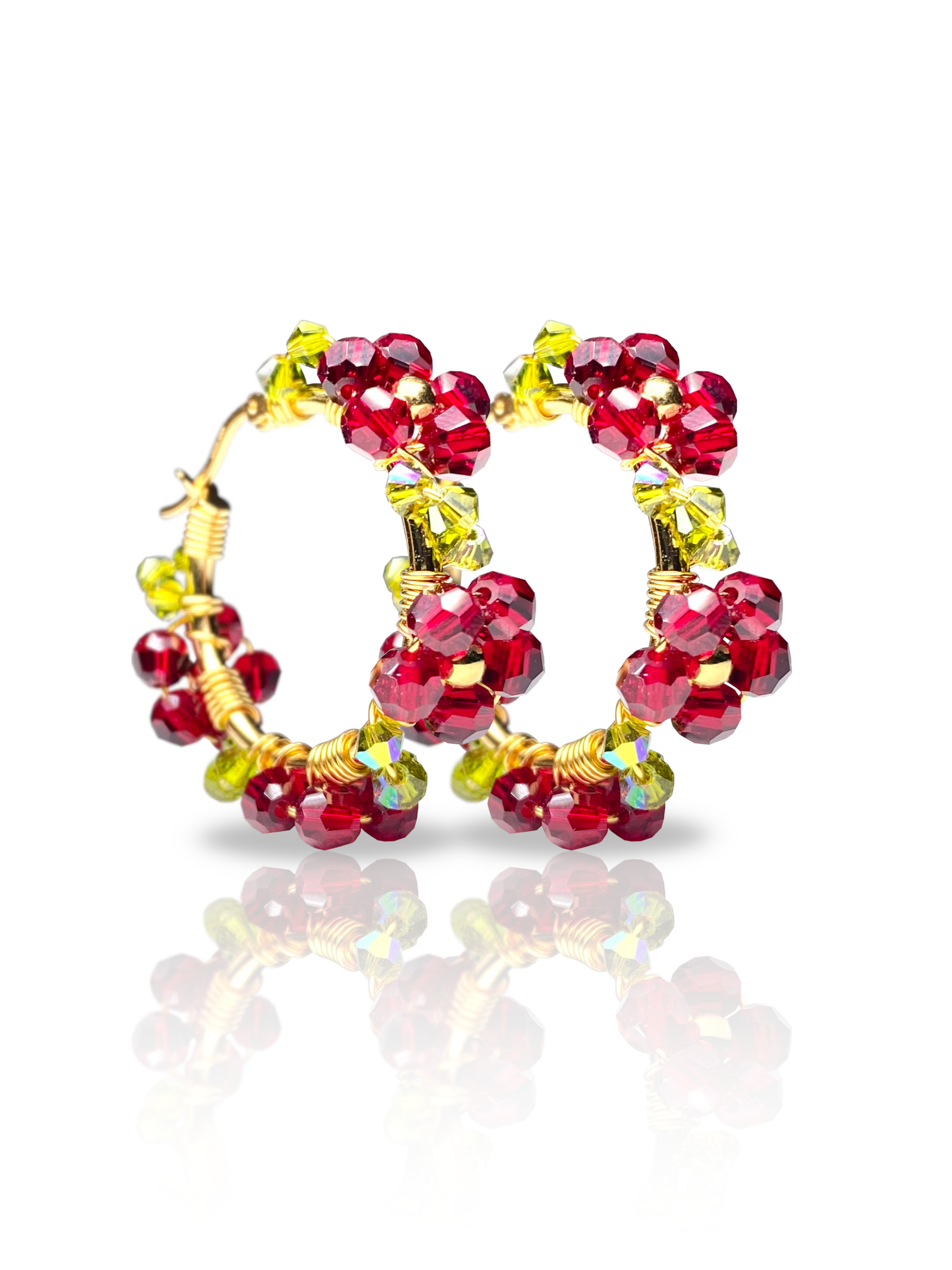 Kristalliniitty-korvakorut, tummanpunainen, kullattu hopea