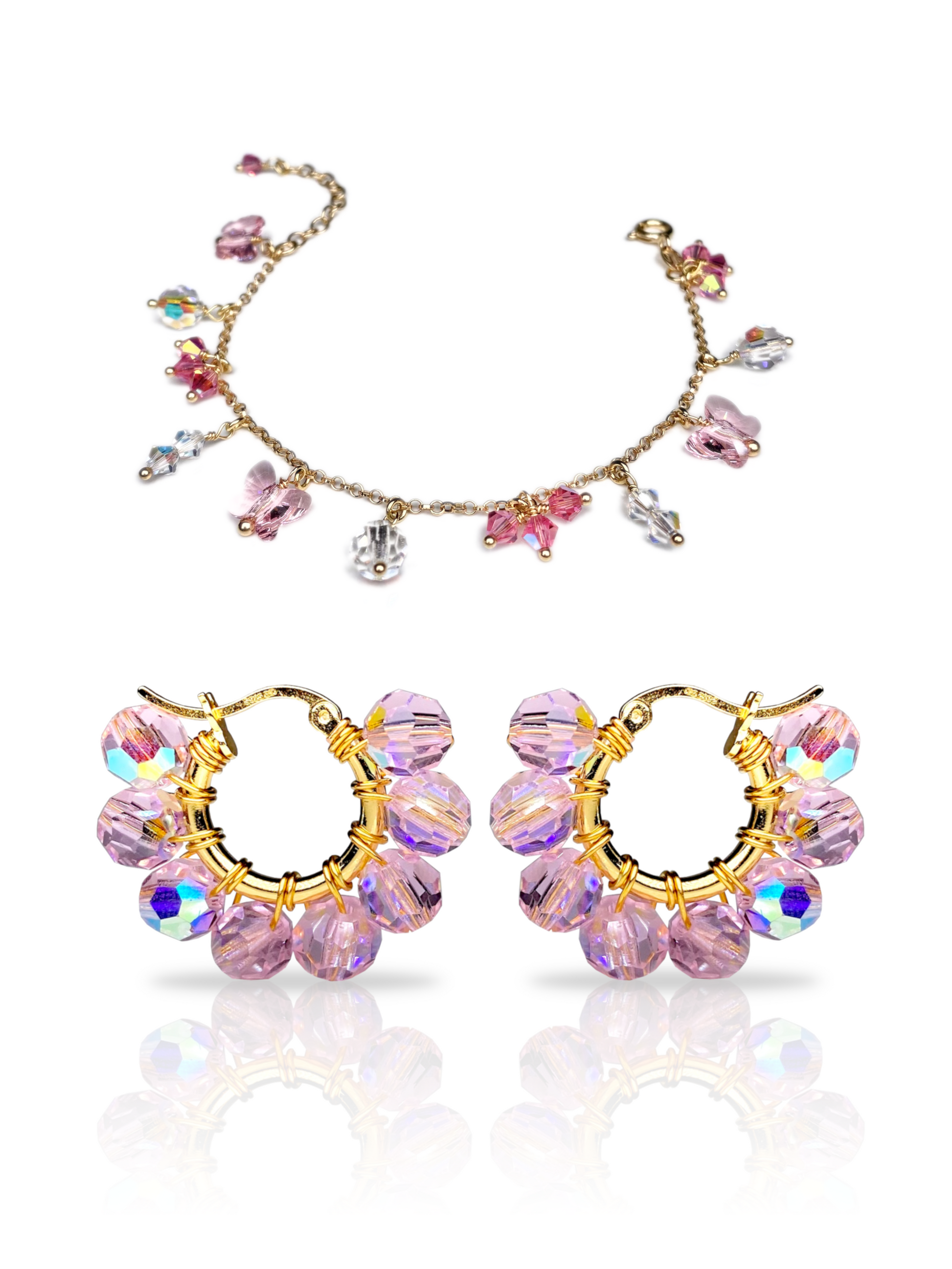 Tähän suloiseen korusettiin kuuluvat korvakorut ja rannekoru.