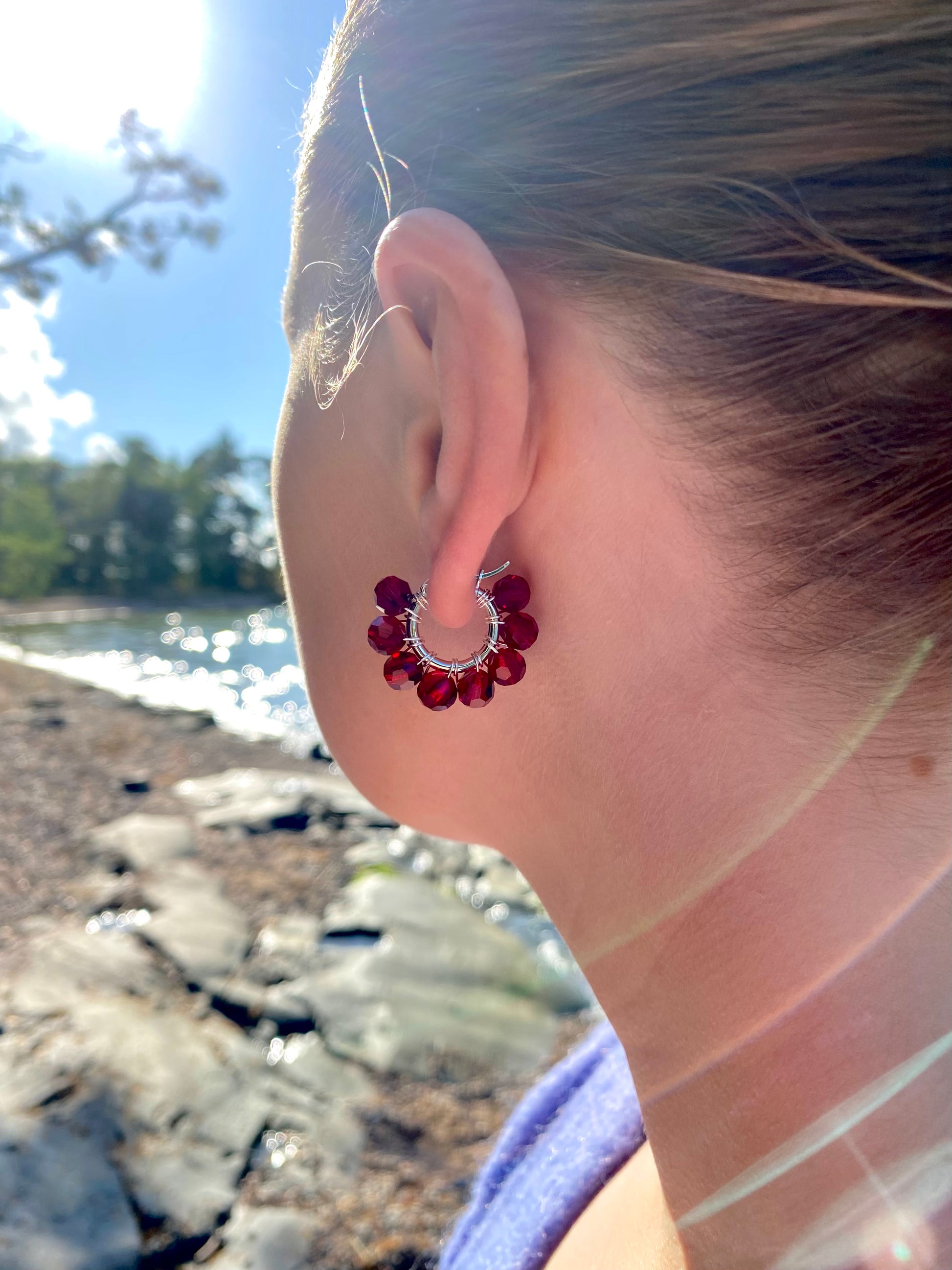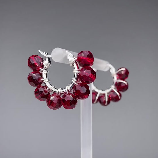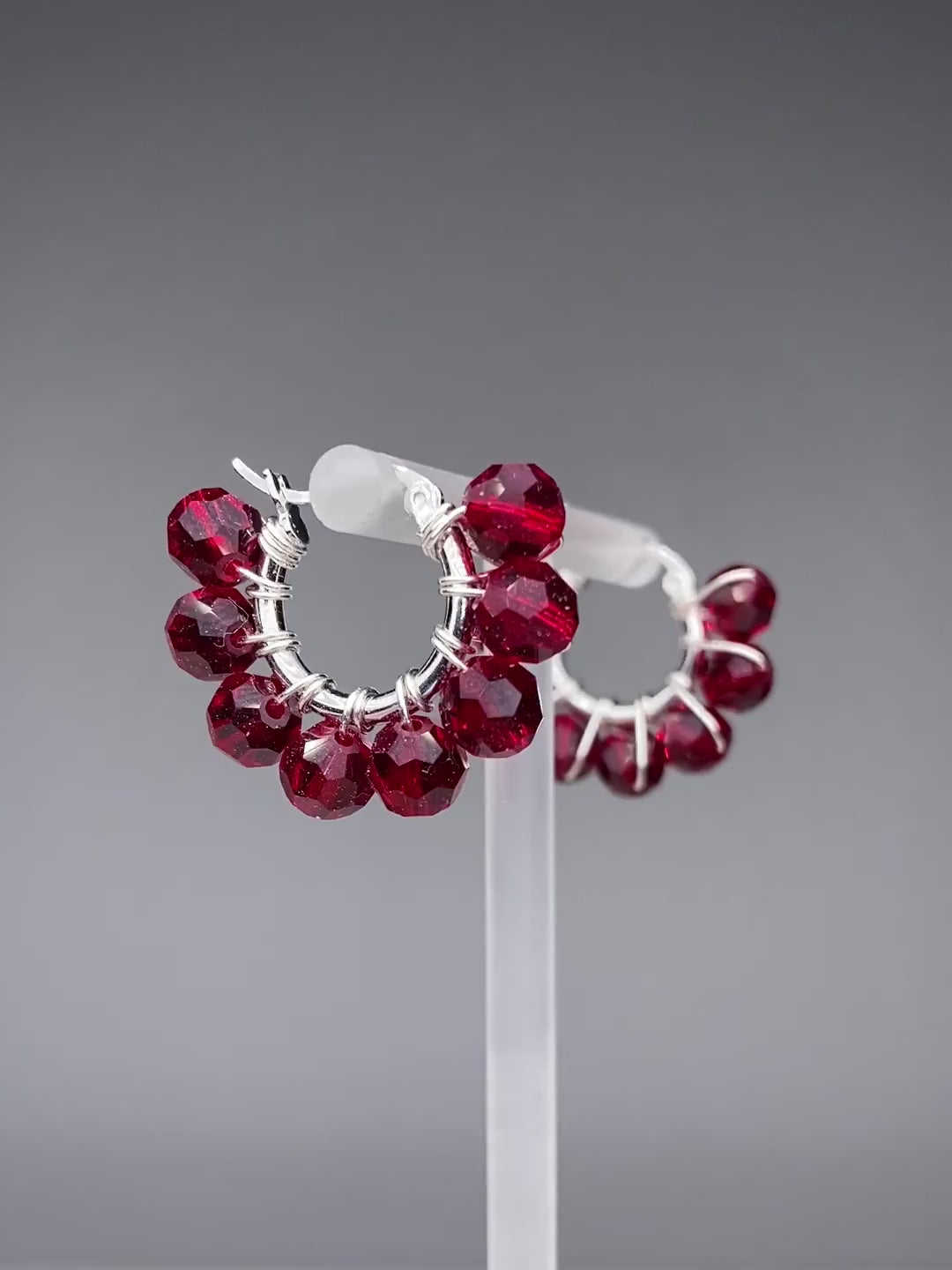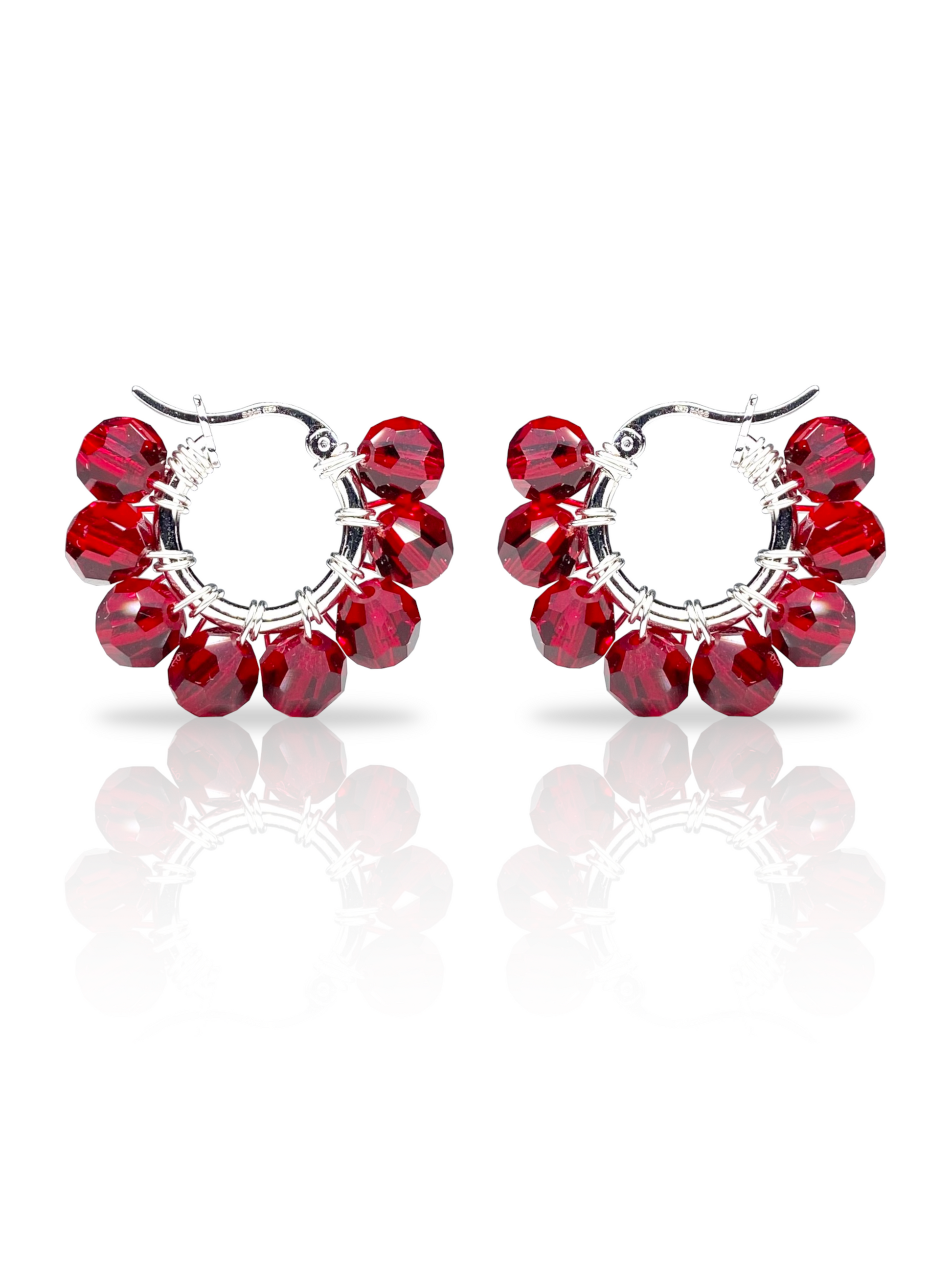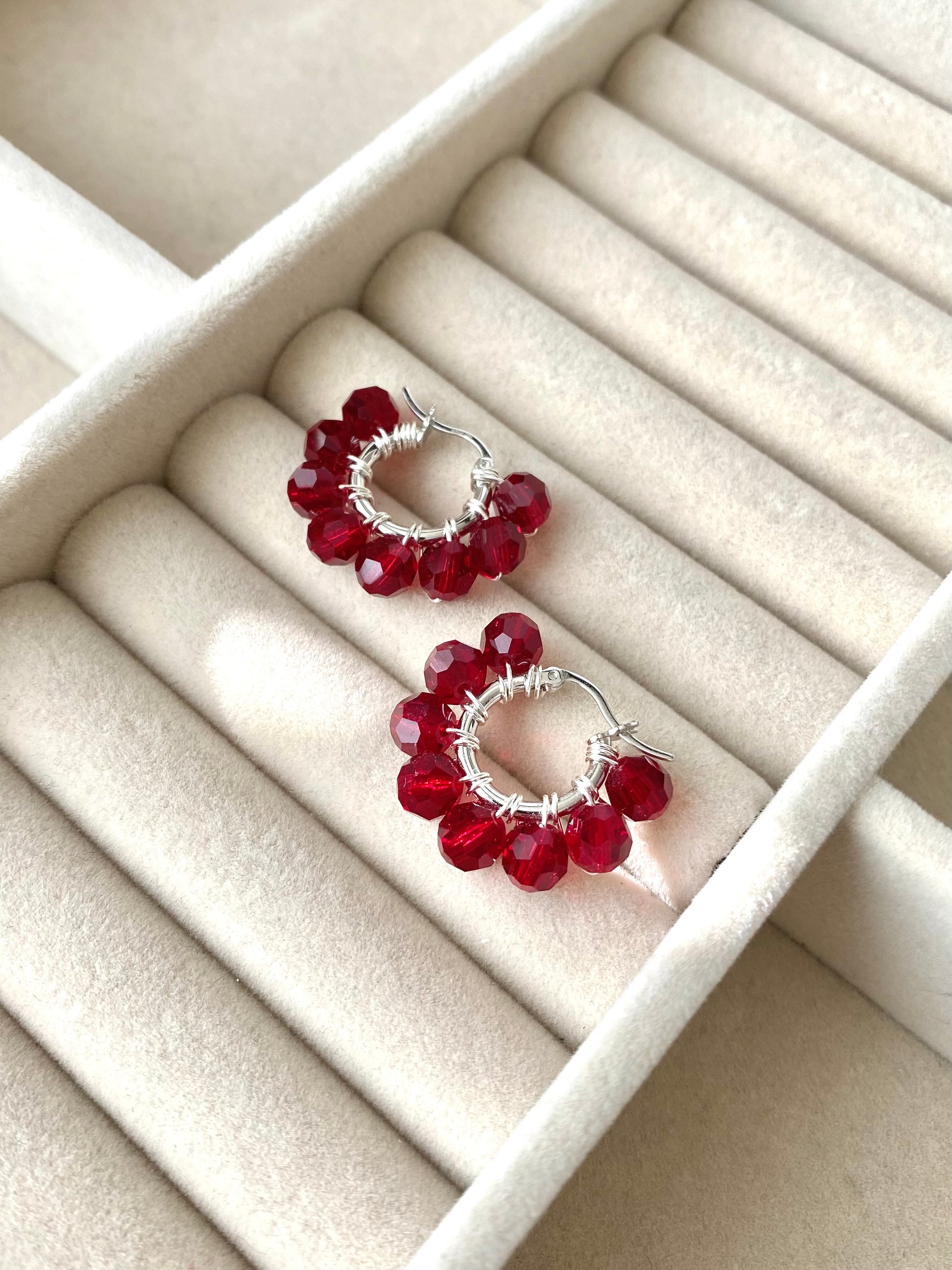 Pikkurenkaat-korvakorut, tummanpunainen, hopea