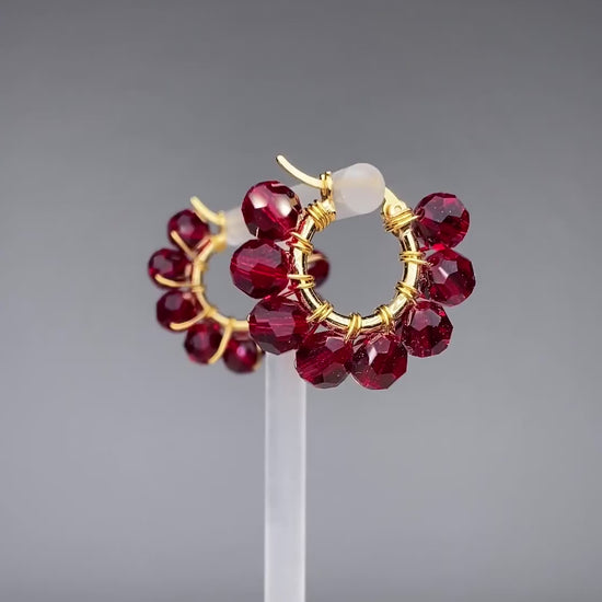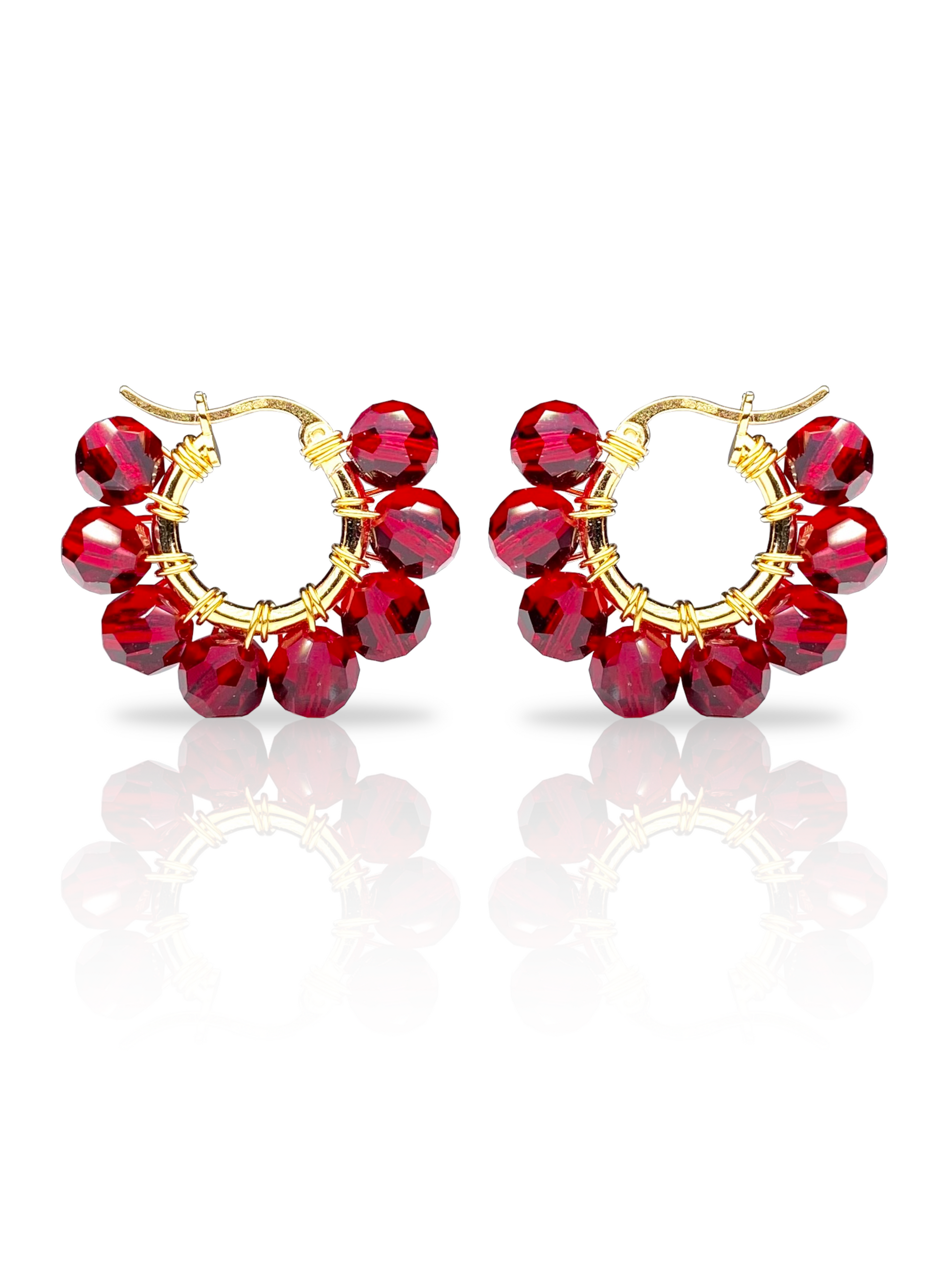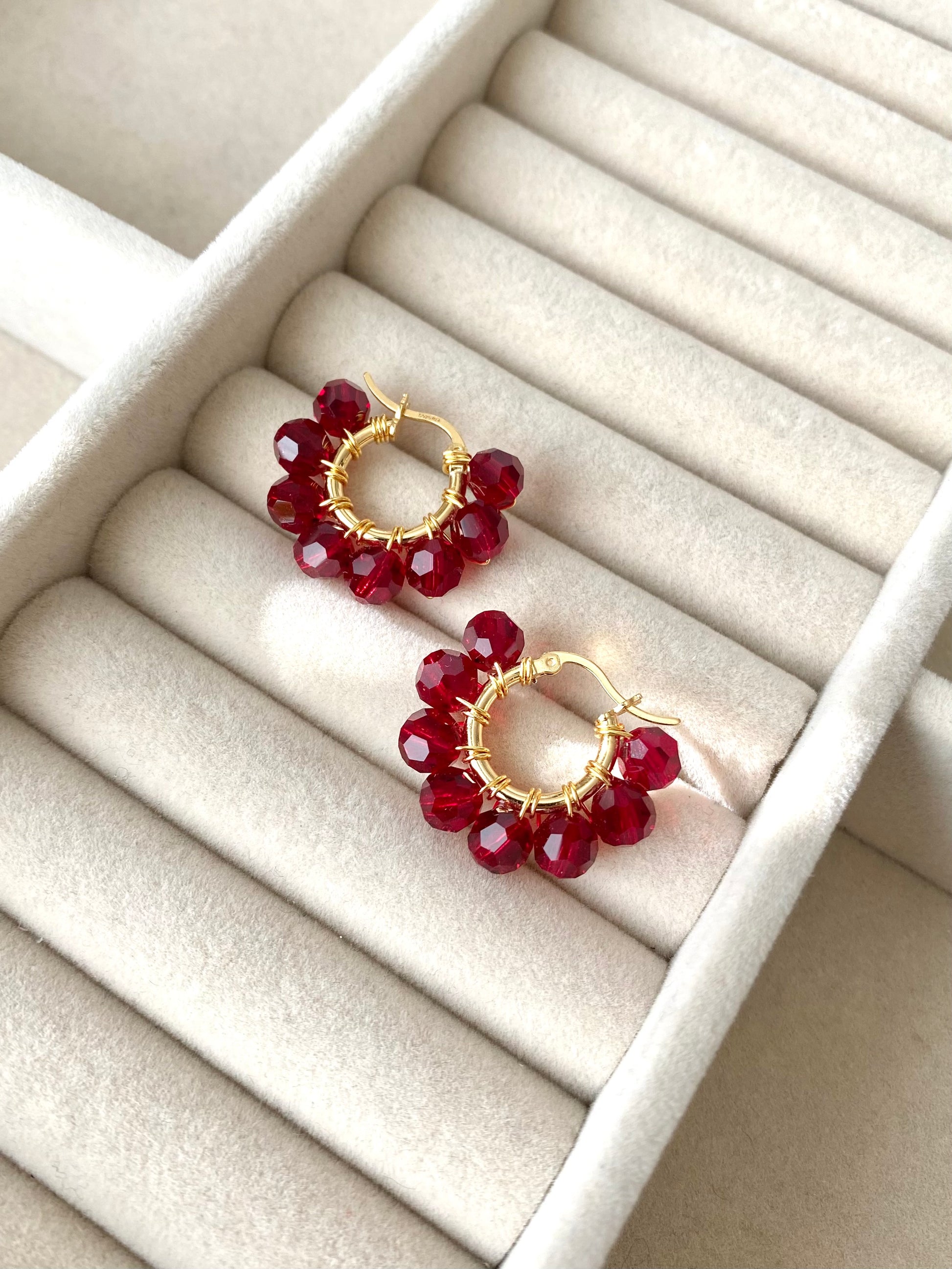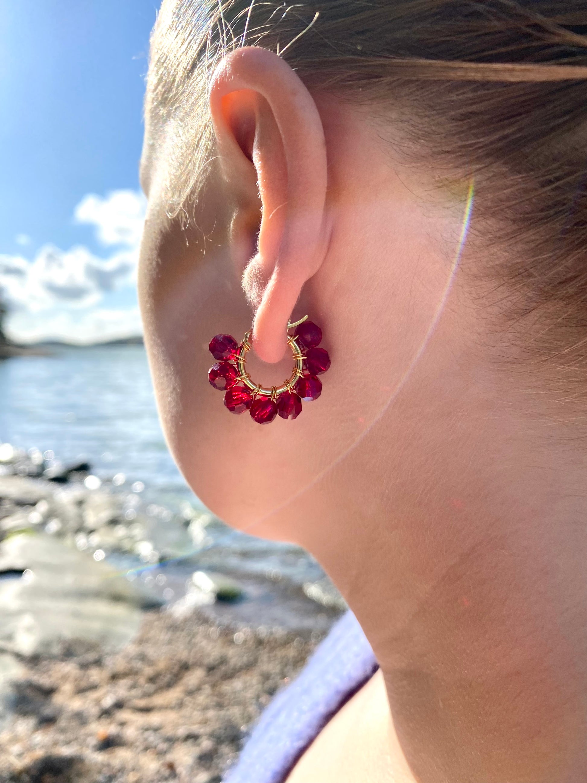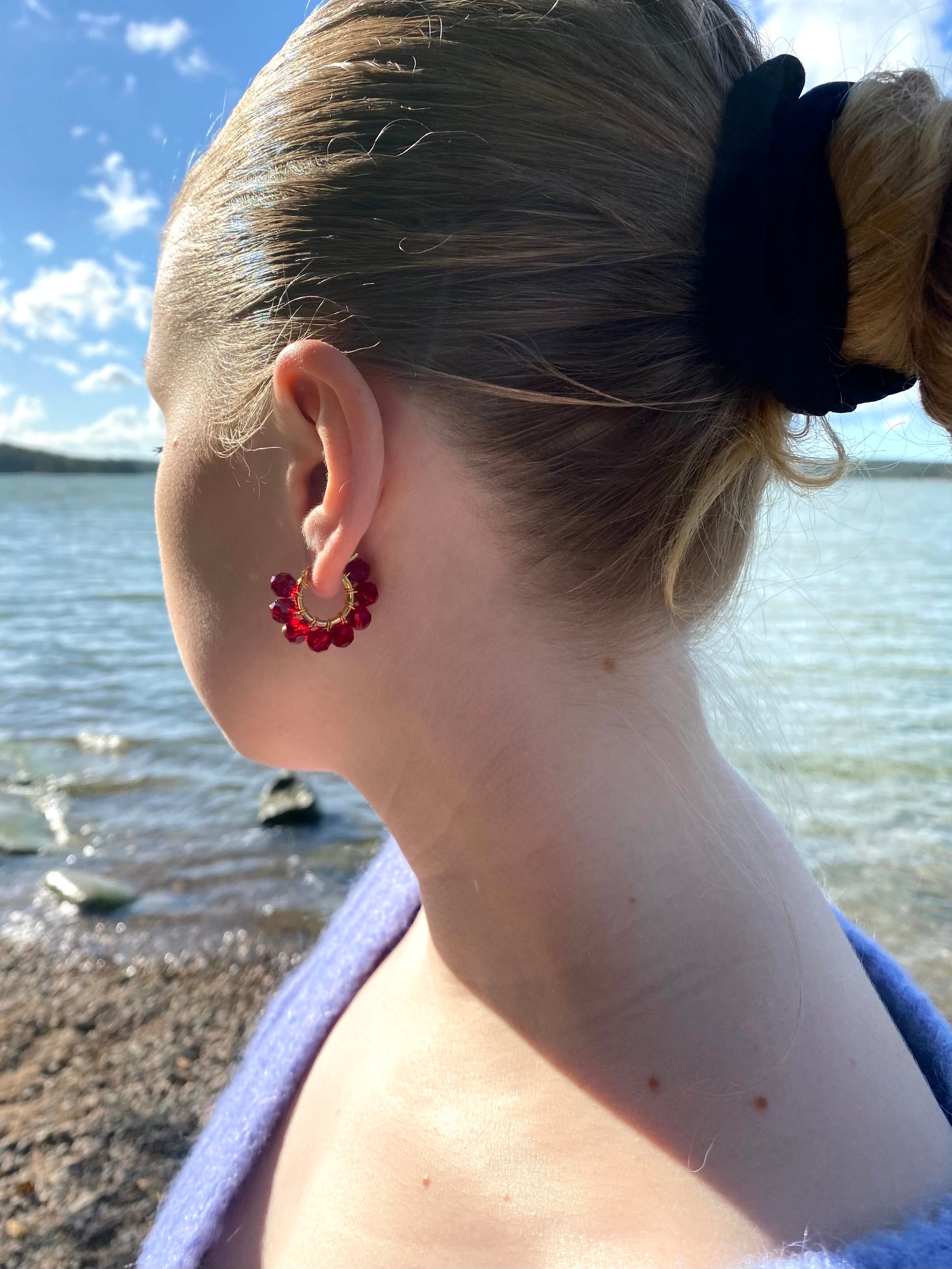 Pikkurenkaat-korvakorut, tummanpunainen, kullattu hopea