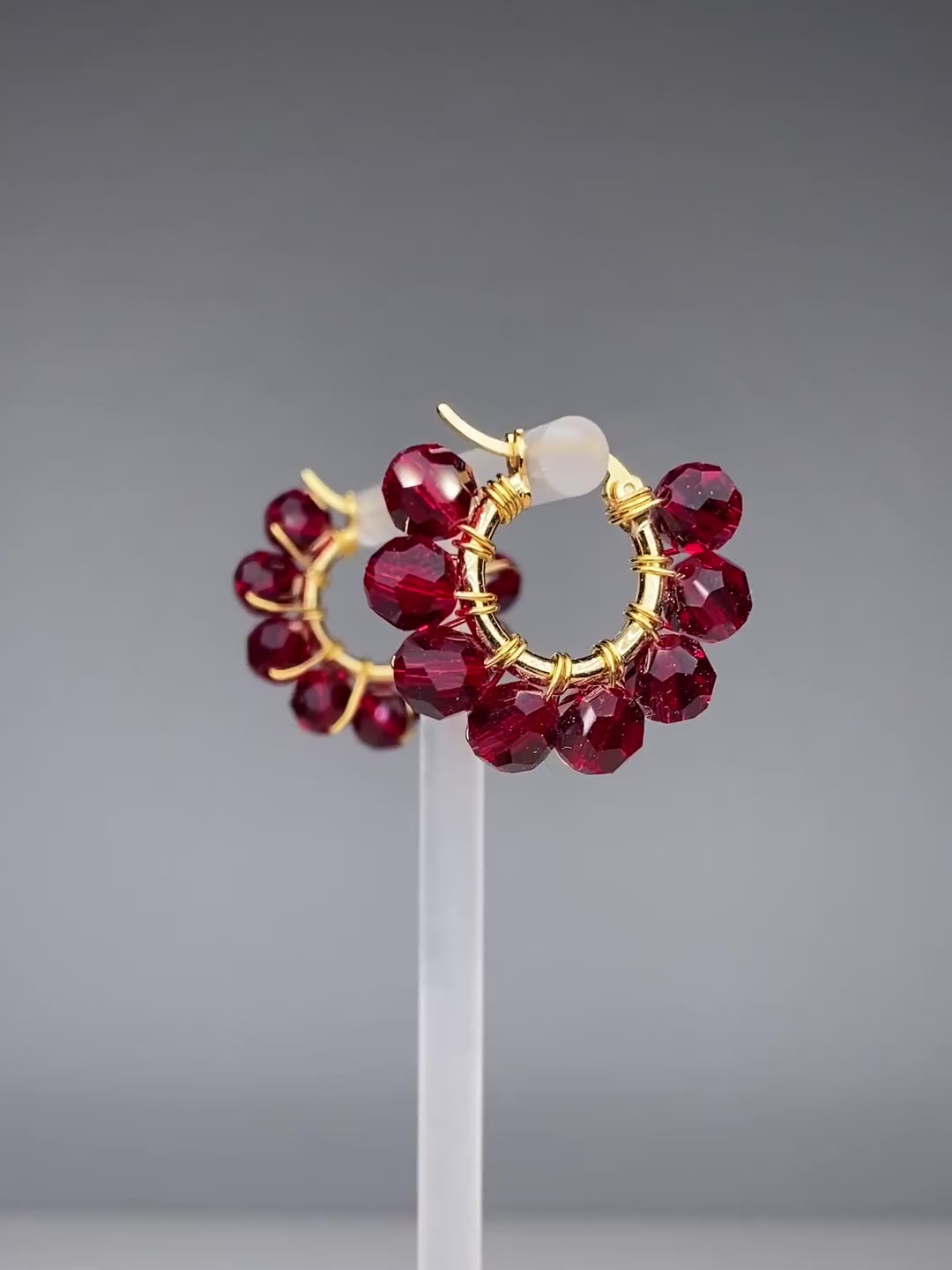Pyöreillä kristallilasihelmillä koristellut Pikkurenkaat ovat yksinkertaiset, mutta näyttävät. Halkaisijaltaan 15 mm korvakorurenkaissa suuret helmet pääsevät oikeuksiinsa. Korvakorurenkaat ovat 14K keltakullalla pinnoitettua 925 sterling hopeaa, joihin jokainen helmi on käsin punottu yksi kerrallaan. Renkaat ovat käsitelty suojakerroksella, joka ehkäisee pinnoitteen kulumista ja parantaa korun kestävyyttä. Pikkurenkaat tuovat väriä arkeen tai viimeistelevät juhla-asun täydellisesti.