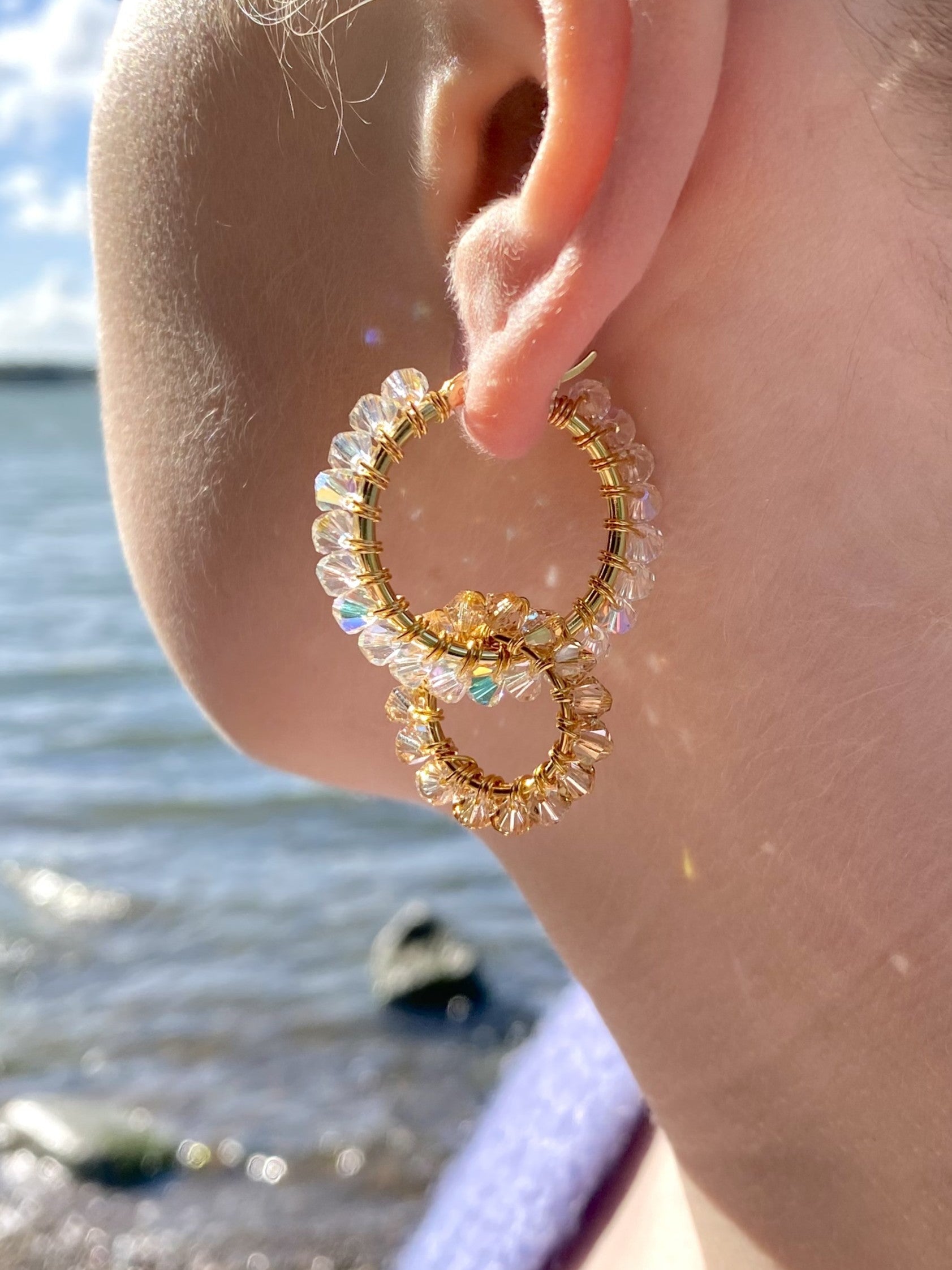 Materiaalit: kullattu 925 sterling hopea, 24K kullattu kuparilanka, tsekkiläiset kristallilasihelmet.