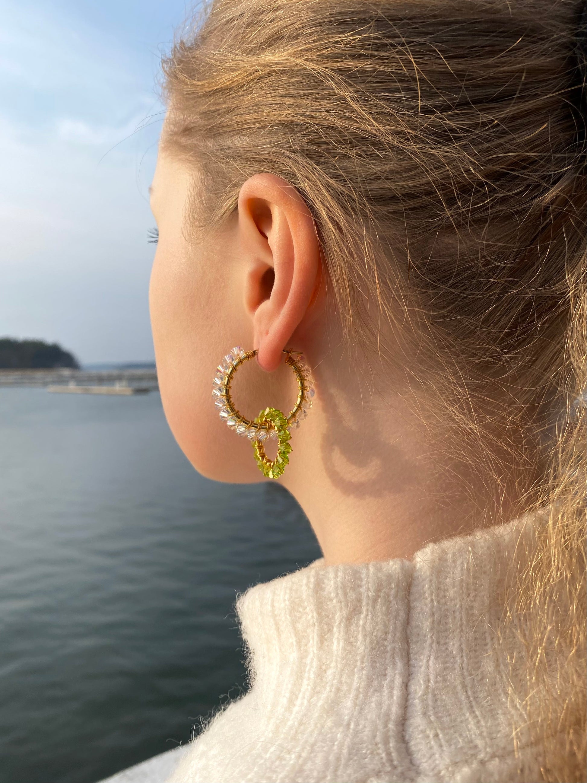 Tuplarenkaat & Soolorengas -korusetti, lime, kullattu hopea